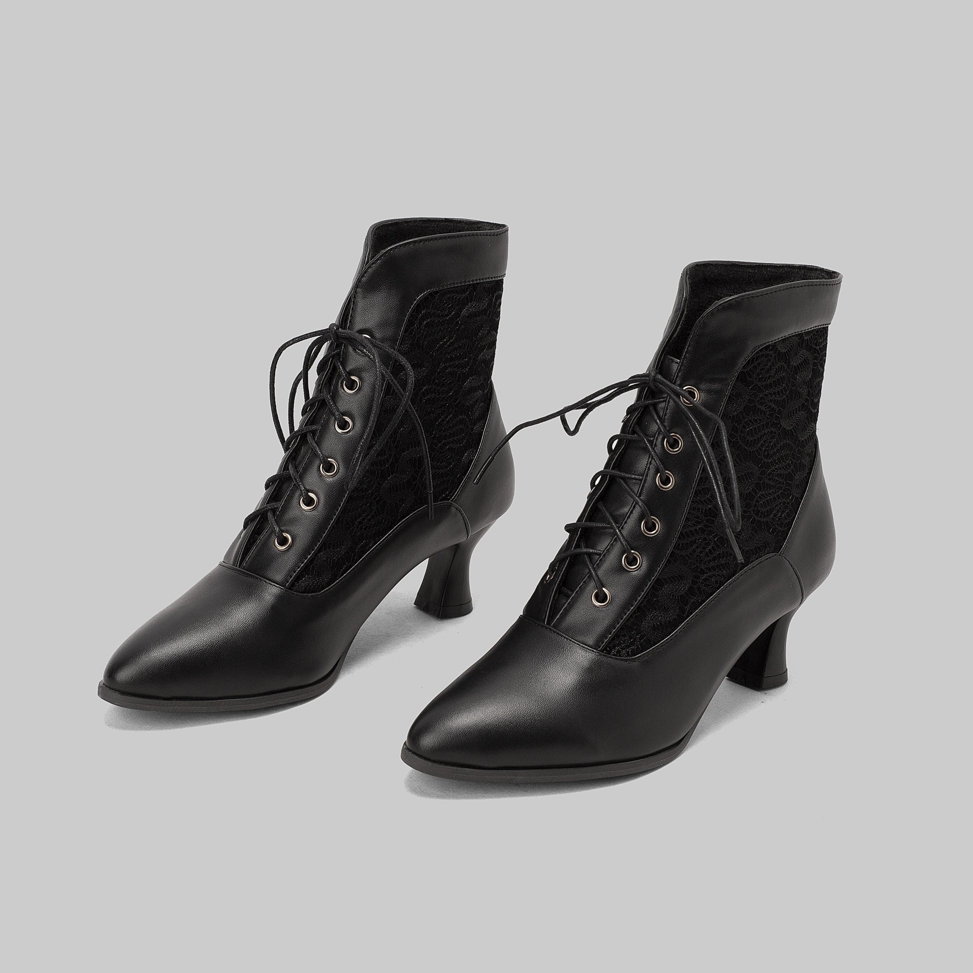Women's Leather Stiletto Ankle Boots Pointed Toe Lace Up Short Shoes