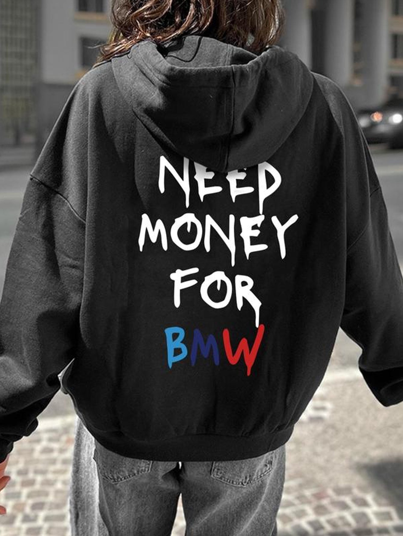 Women's Letter Print Hoodie Casual Fall Winter Micro Elastic Polyester