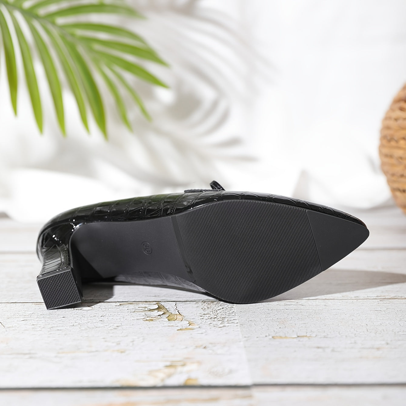 Women's Mary Jane Pumps Pointed Toe Bow Embellished Block Heel Shoes