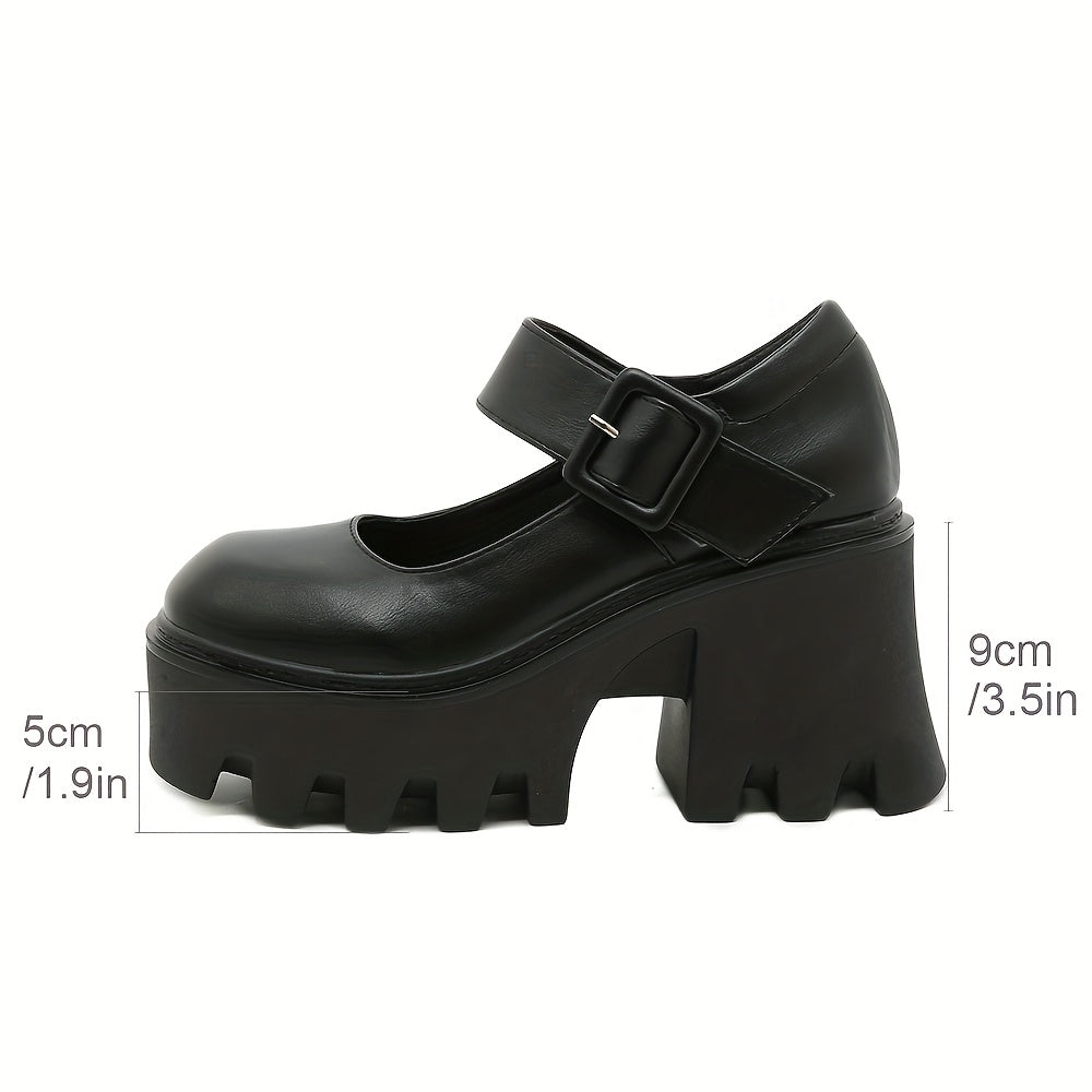 Women's Mary Jane Shoes Closed Toe Buckle Strap Platform Chunky Heels