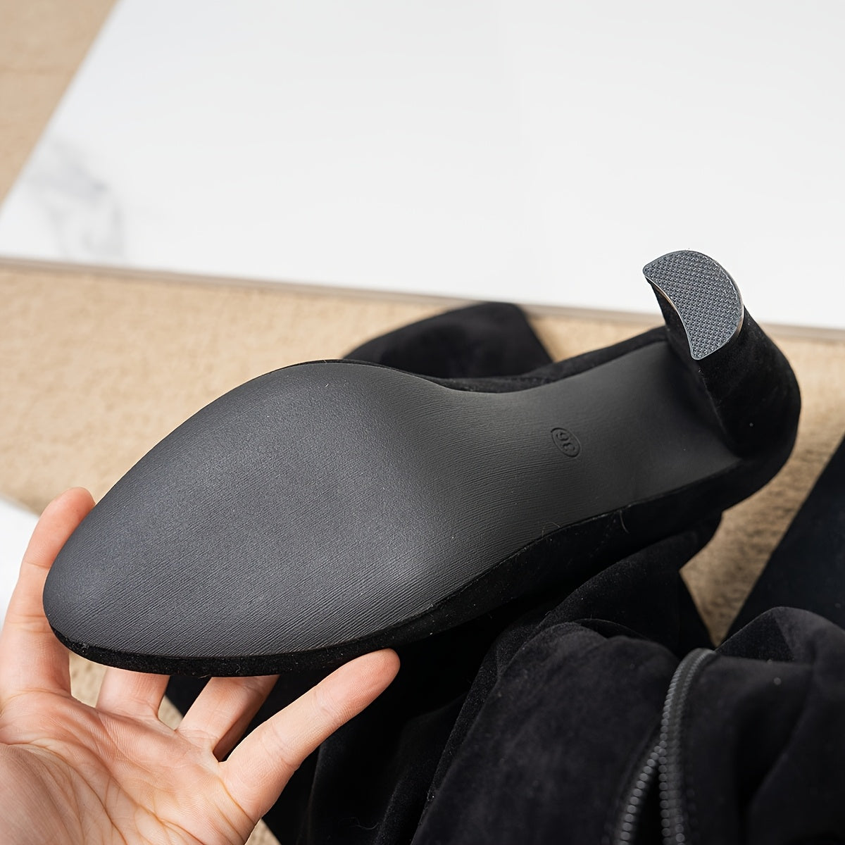 Women's Over-the-Knee Chunky Heel Boots with Zipper and Pointed Toe