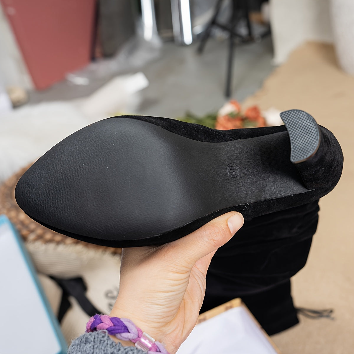 Women's Over-the-Knee Leather Boots with Pointed Toe and Block Heel