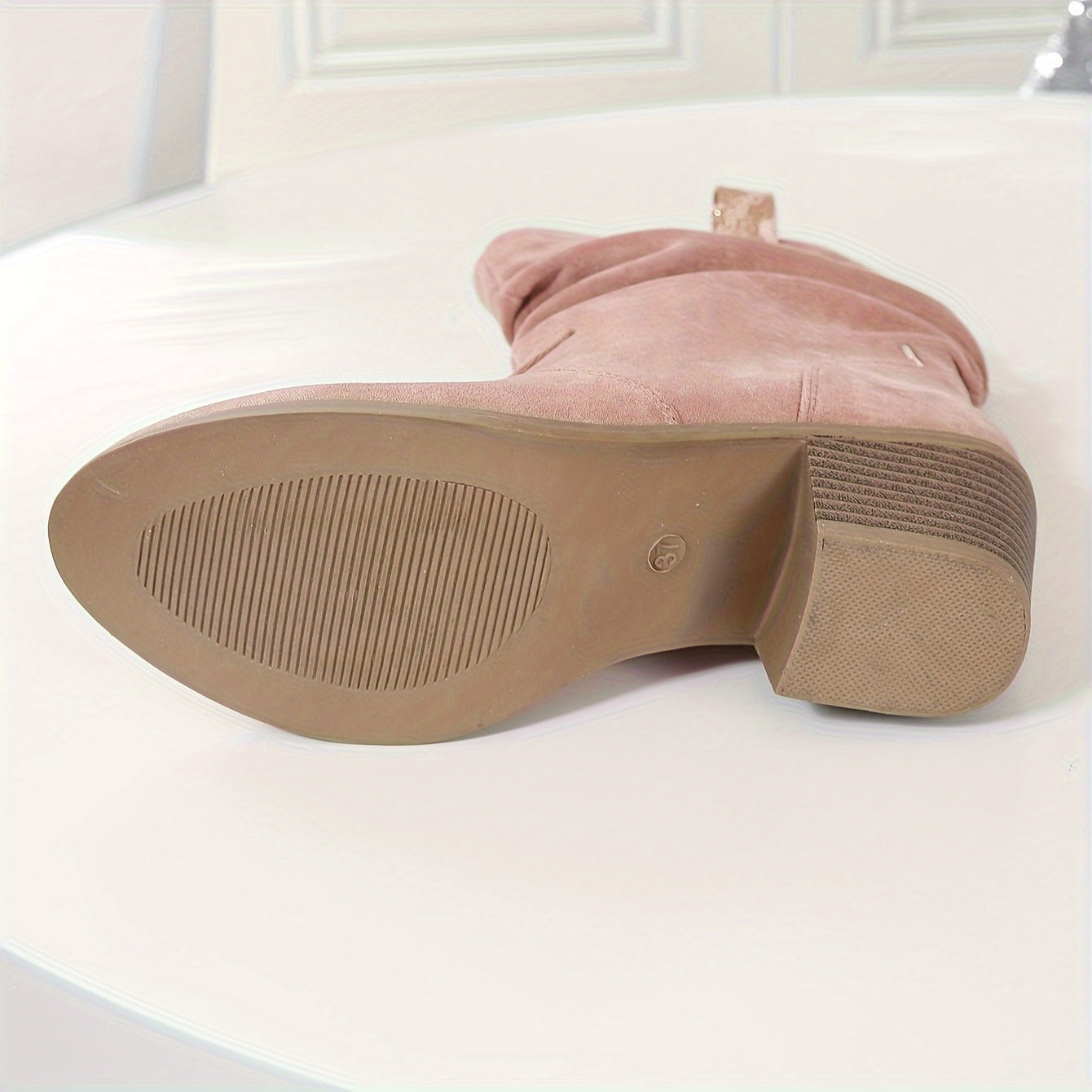 Women's Pink Slouchy Mid-Calf Boots with Glitter Accents
