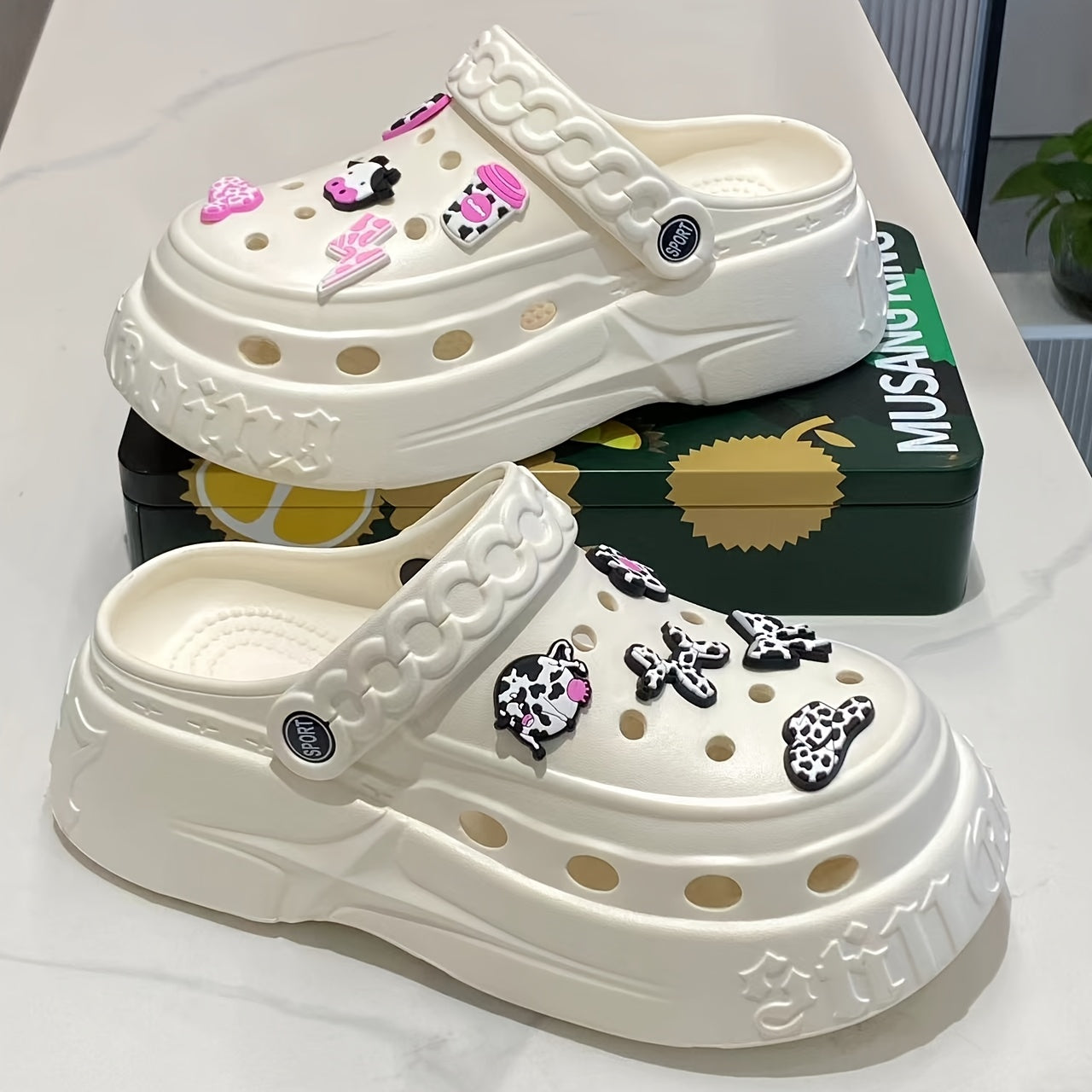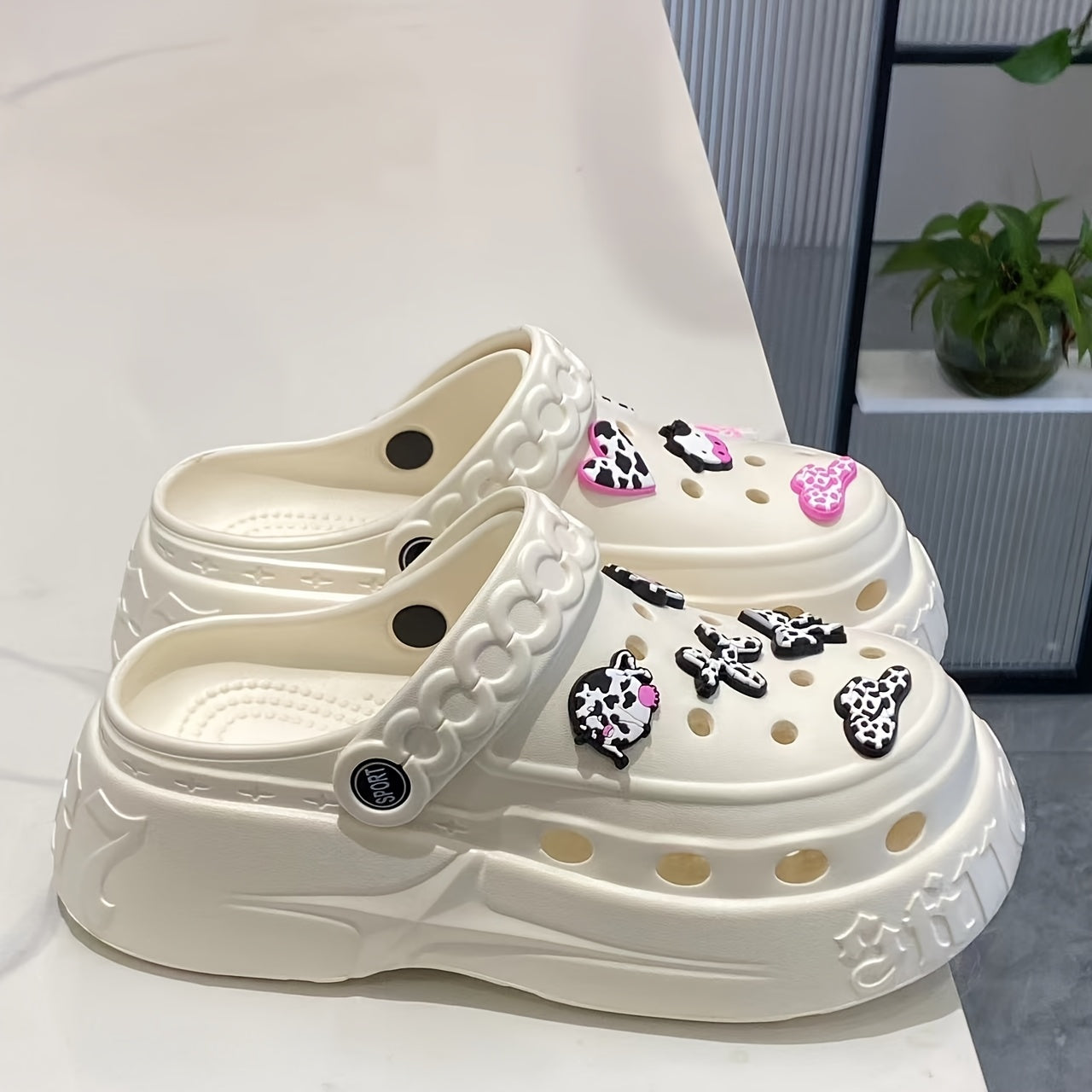Women's Platform Clogs Shoes with Cushioned Insole, Lightweight EVA, Black White
