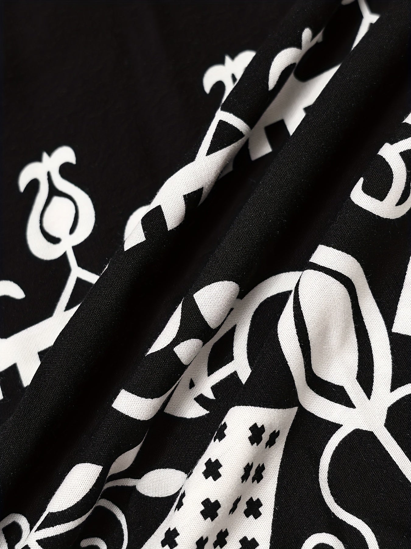 Women's Plus Size Black and White Lace-Up Bermuda Shorts Casual Vacation Floral Print