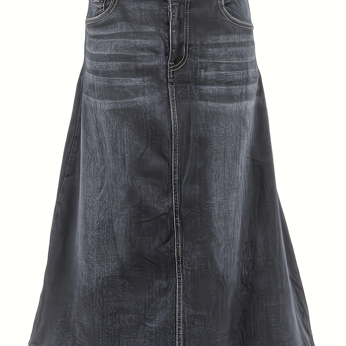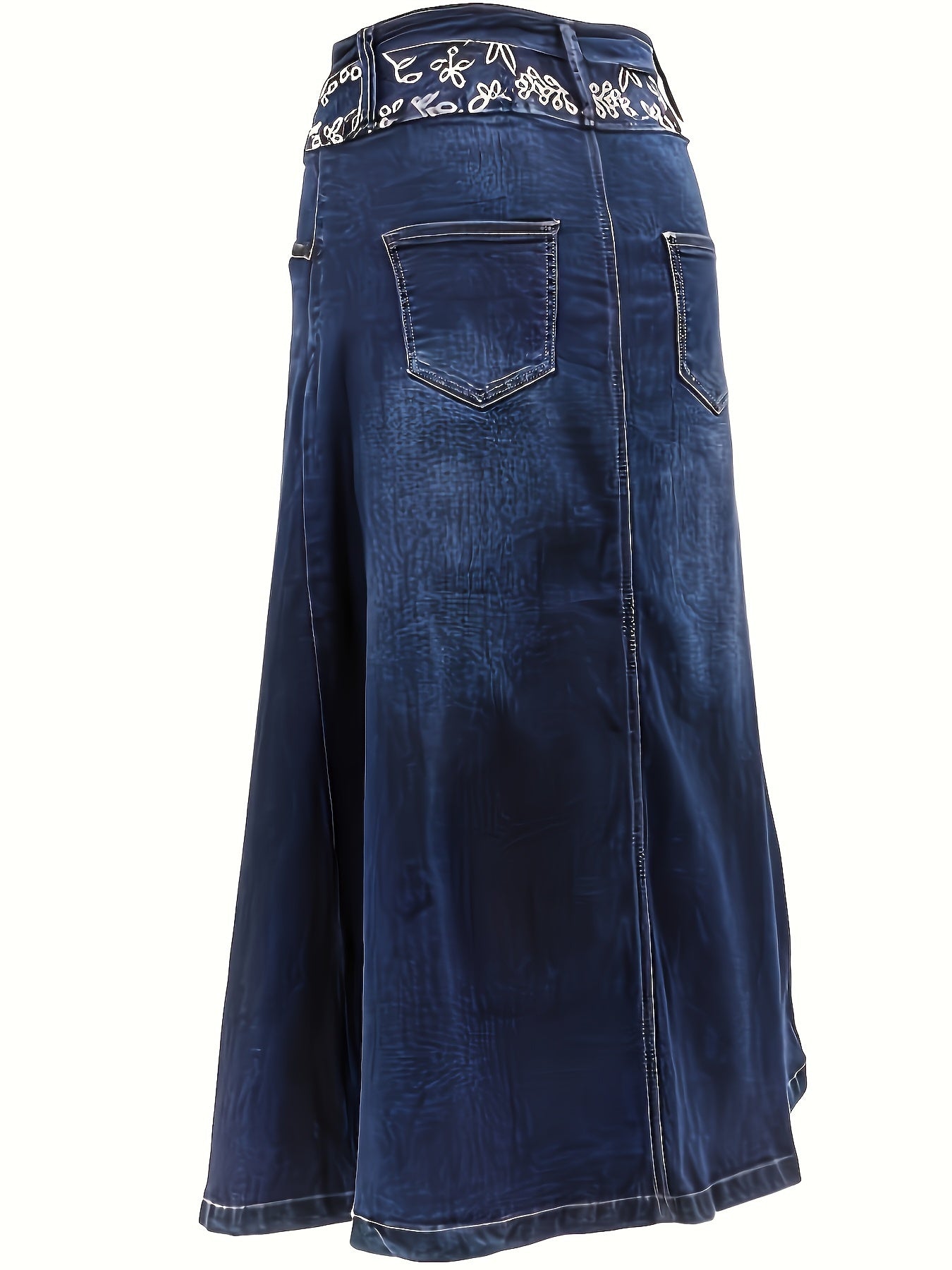Women's Plus Size Blue Stretch Denim A-Line Midi Skirt With Button Details