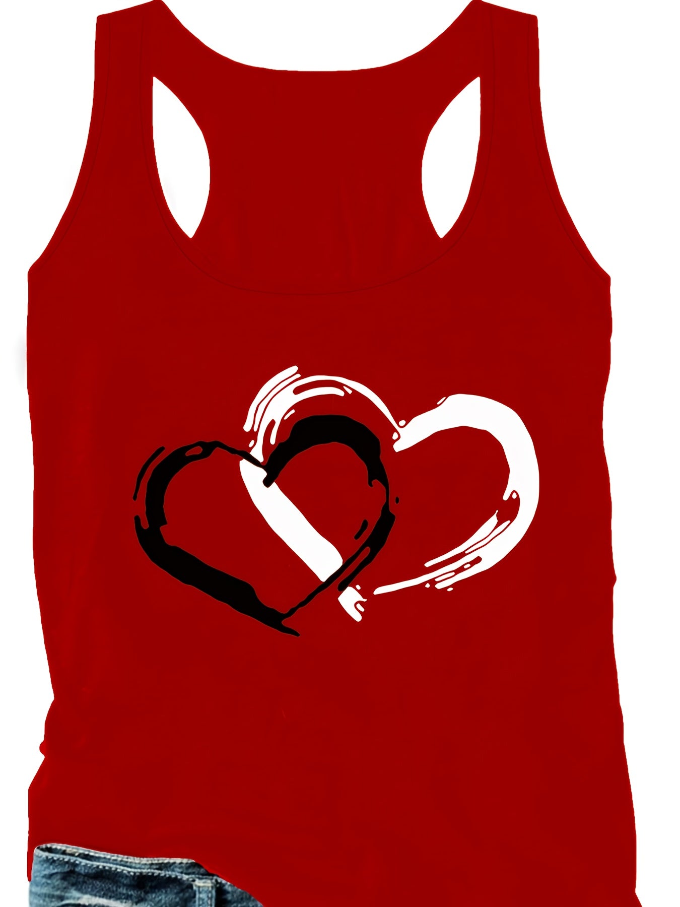 Women's Plus Size Casual Tank Top with Heart and Letter Print Polyester Blend