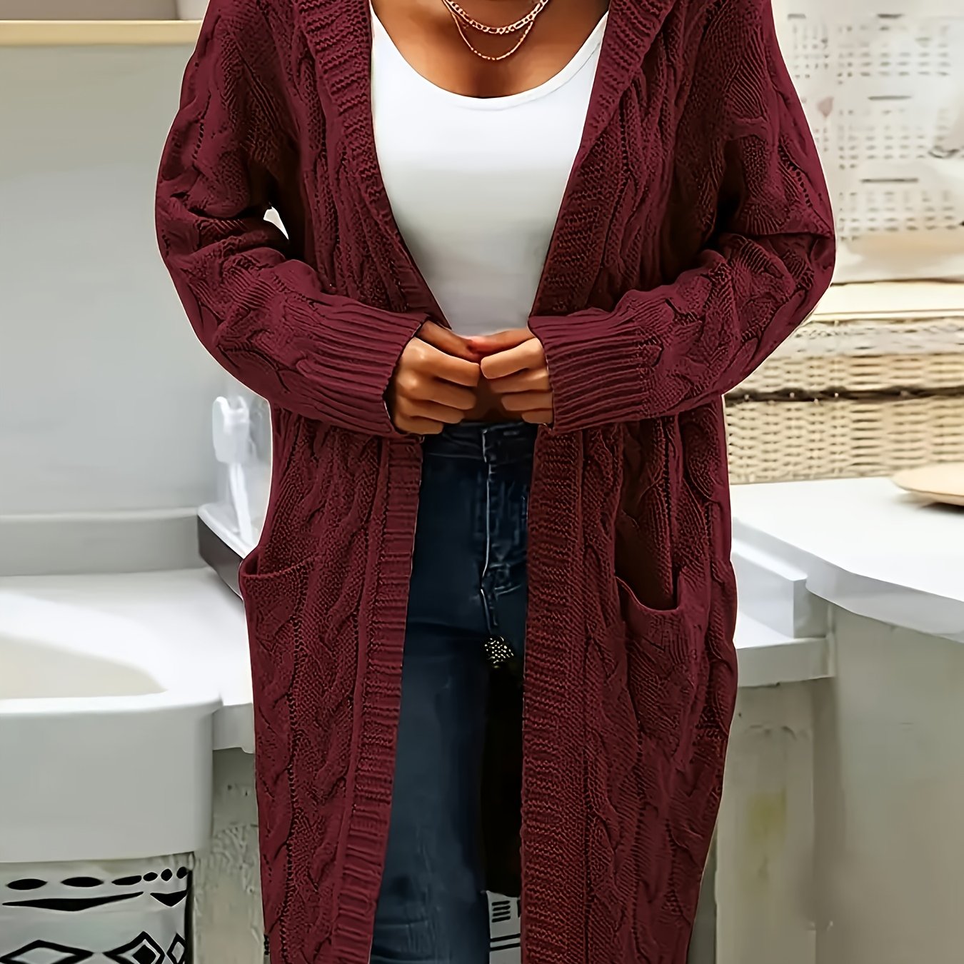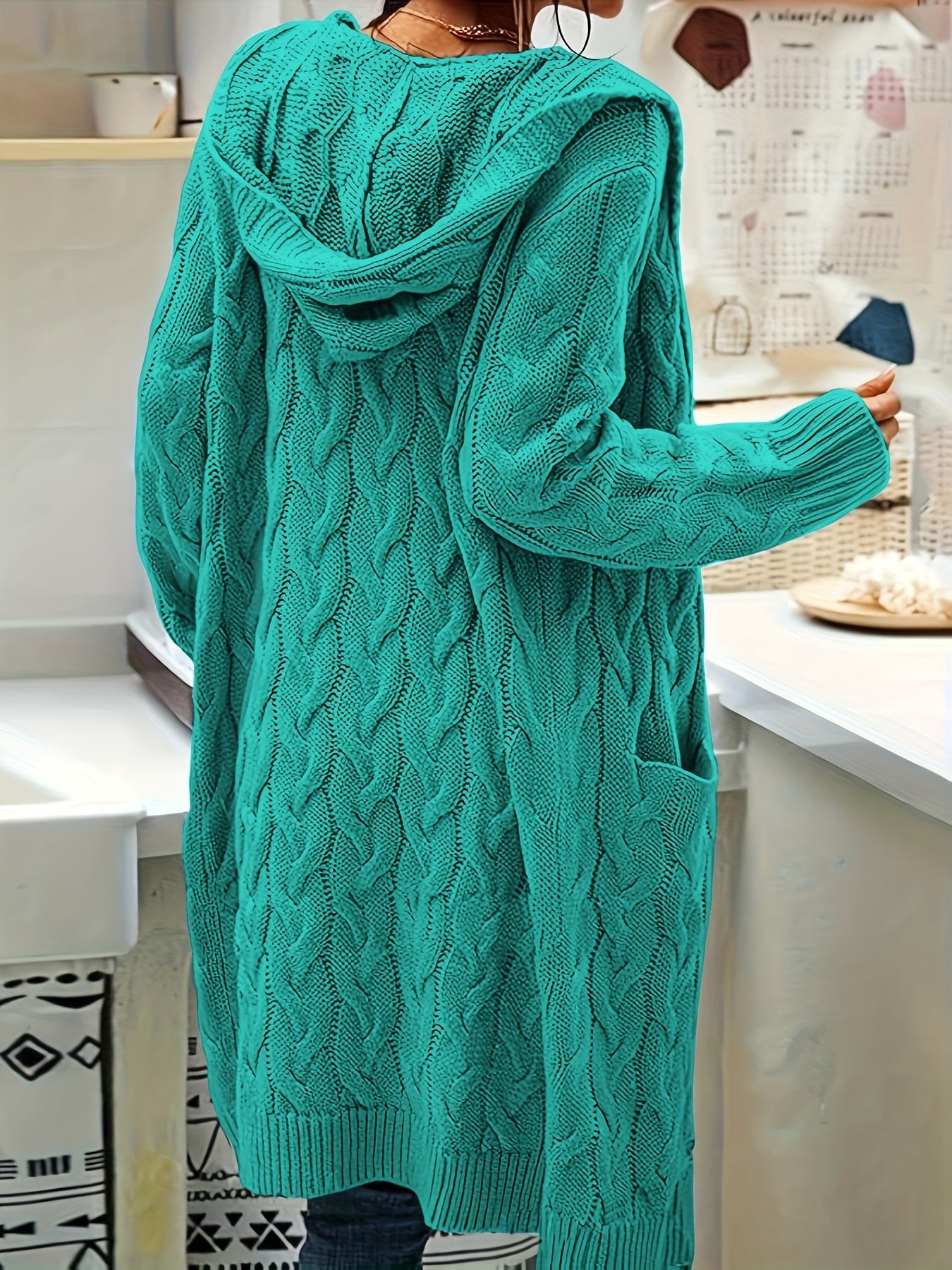 Women's Plus Size Casual Twist Front Hooded Cardigan with Pockets