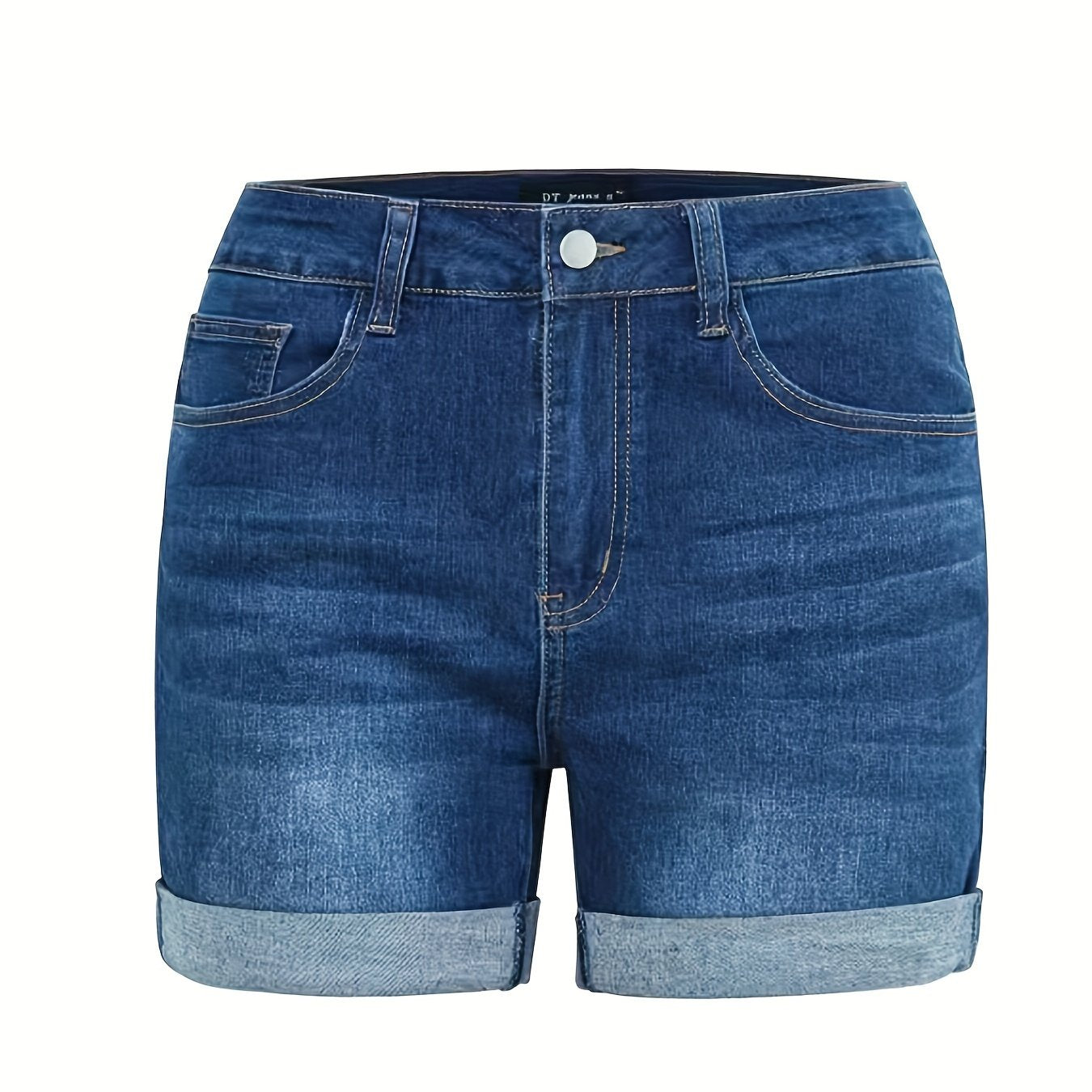 Women's Plus Size Denim Shorts Roll Up Hem Pockets Solid Wash