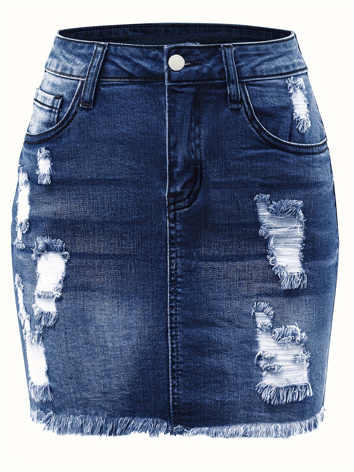 Women's Plus Size Denim Skirt High Rise Ripped Raw Trim Mini