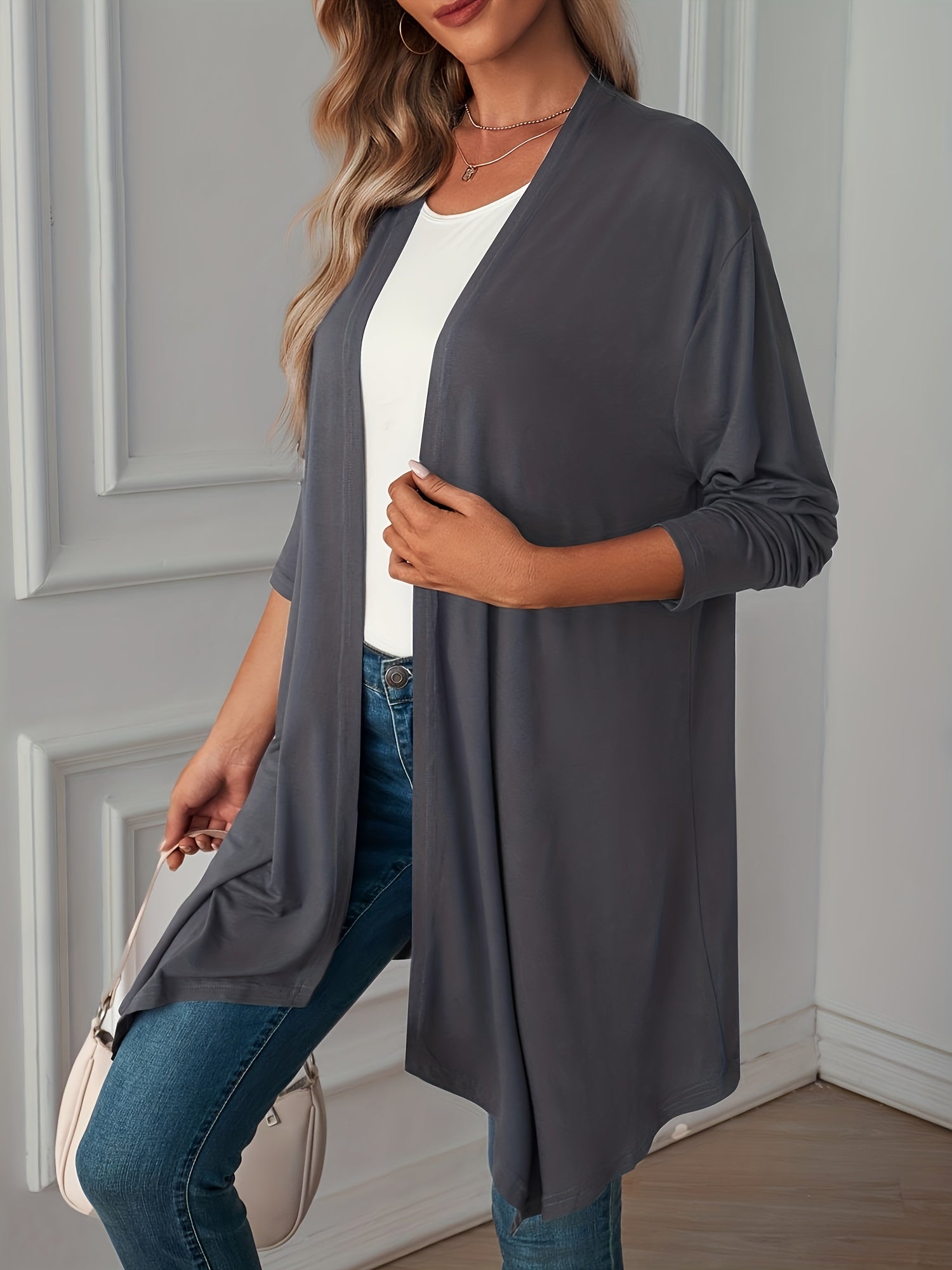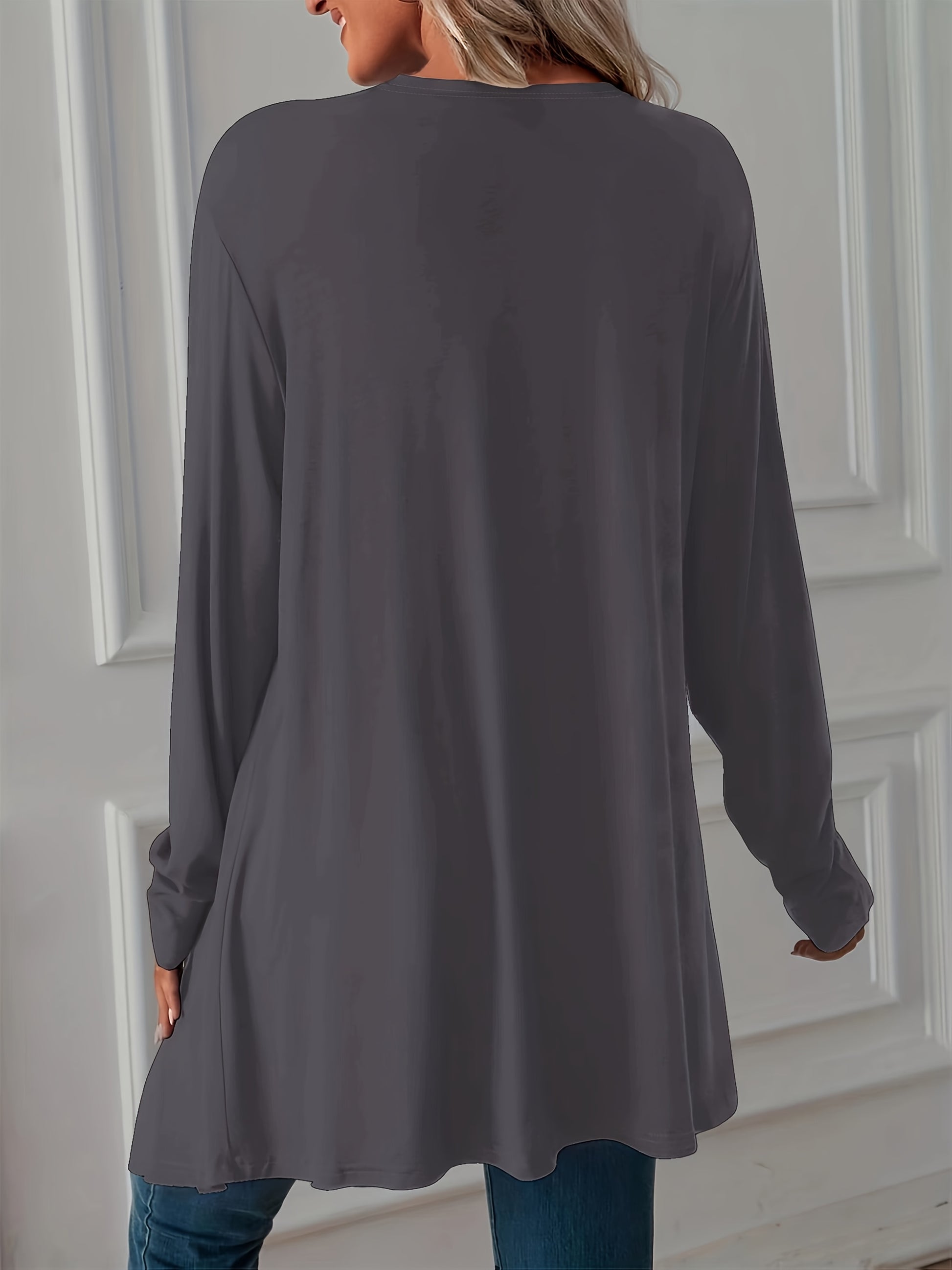 Women's Plus Size Gray Cardigan Long Sleeve Open Front Lightweight Polyester