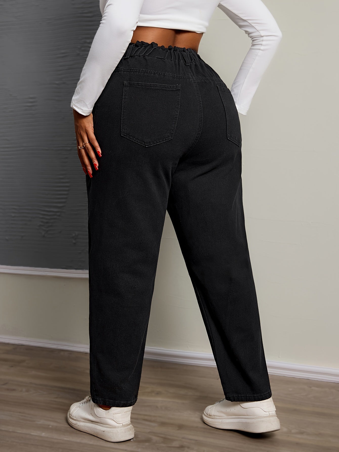 Women's Plus Size High-Waisted Straight Leg Jeans Slimming Denim with Elastic Waist