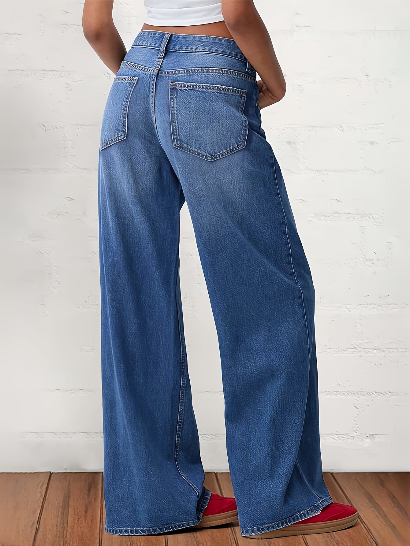 Women's Plus Size High-Waisted Wide Leg Jeans Casual Stretch Denim All-Season