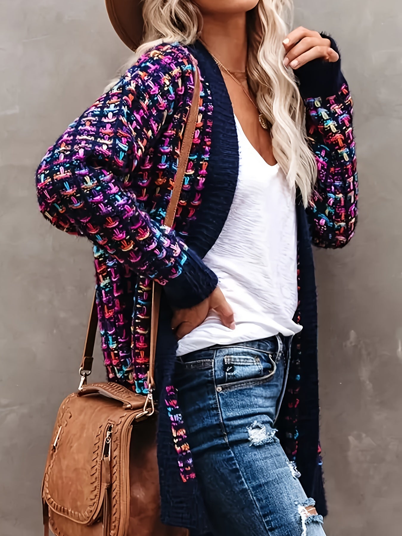 Women's Plus Size Multi Color Open Front Cardigan Casual Long Sleeve Knit