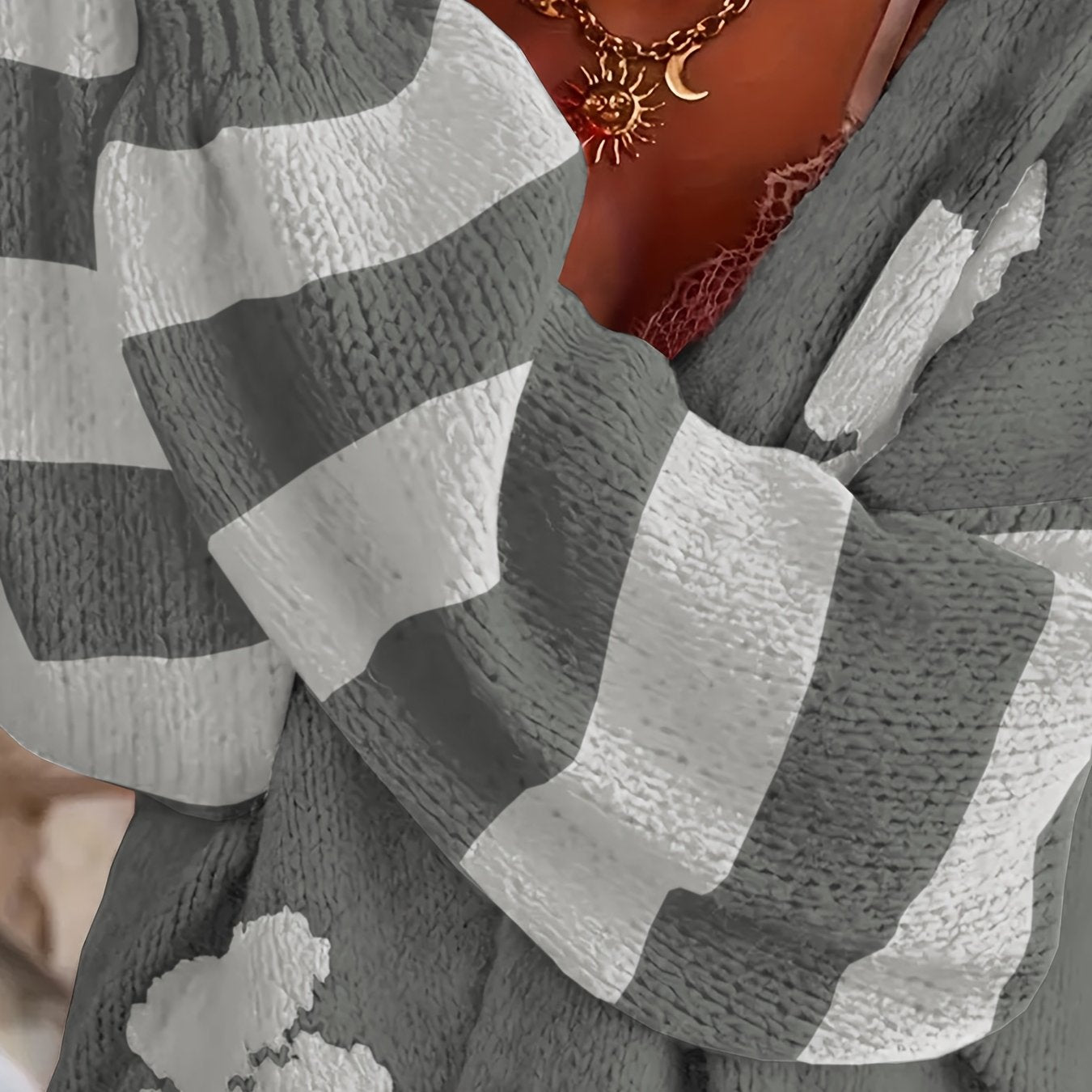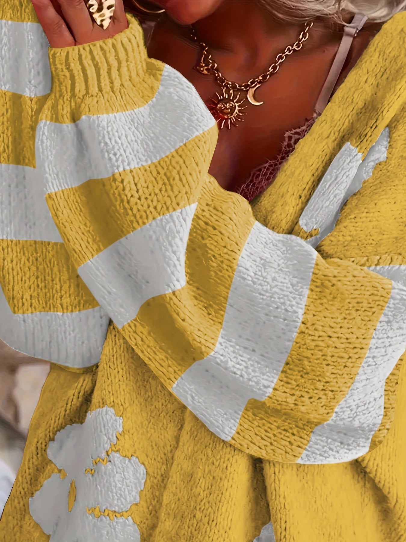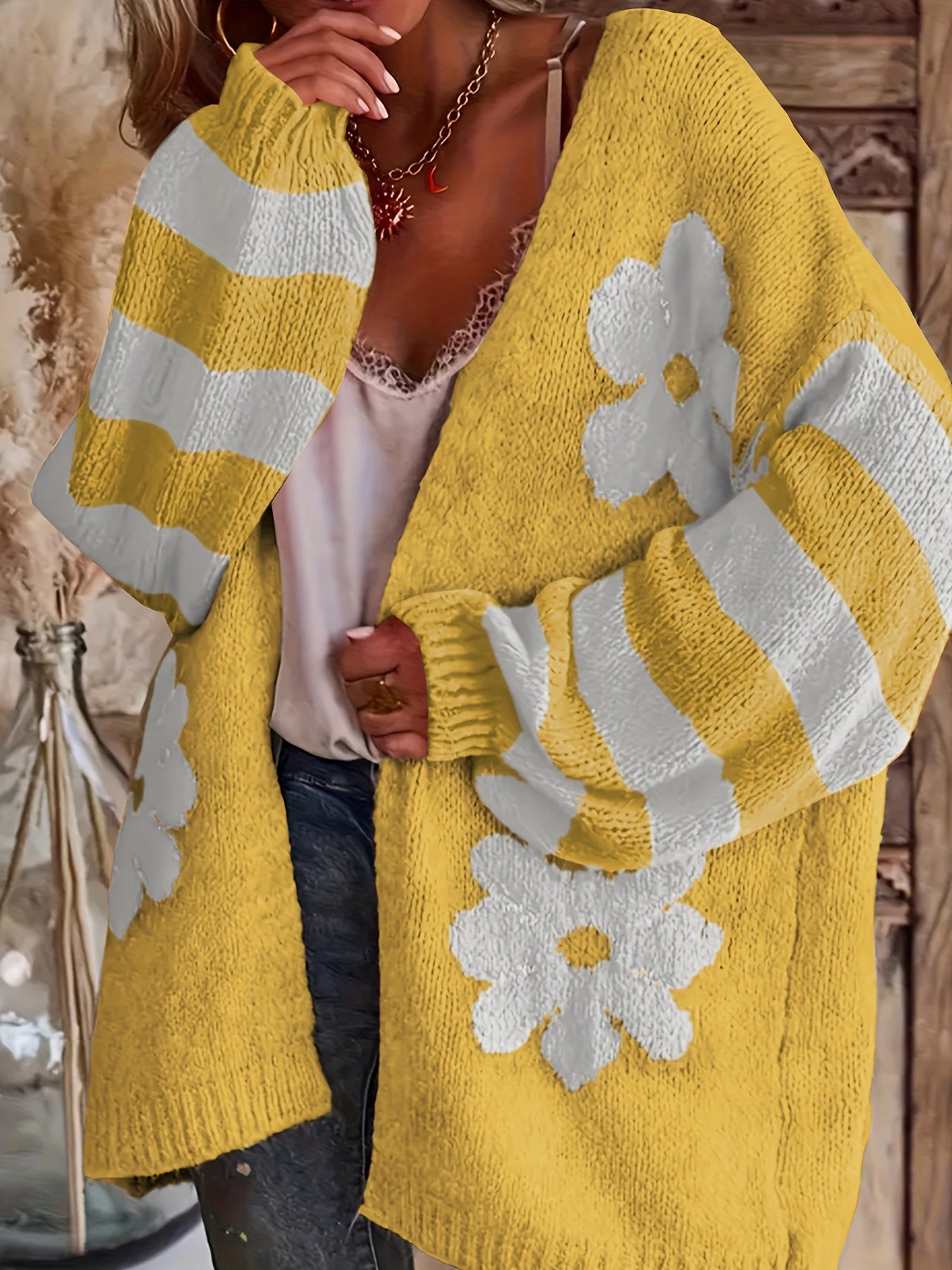 Women's Plus Size V-Neck Floral Print Knit Cardigan Long Sleeve Sweater