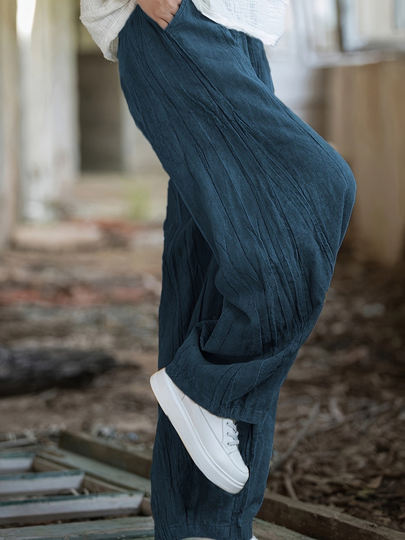 Women’s Plus Size Wide Leg Pants Olive Green Casual Trousers Pockets