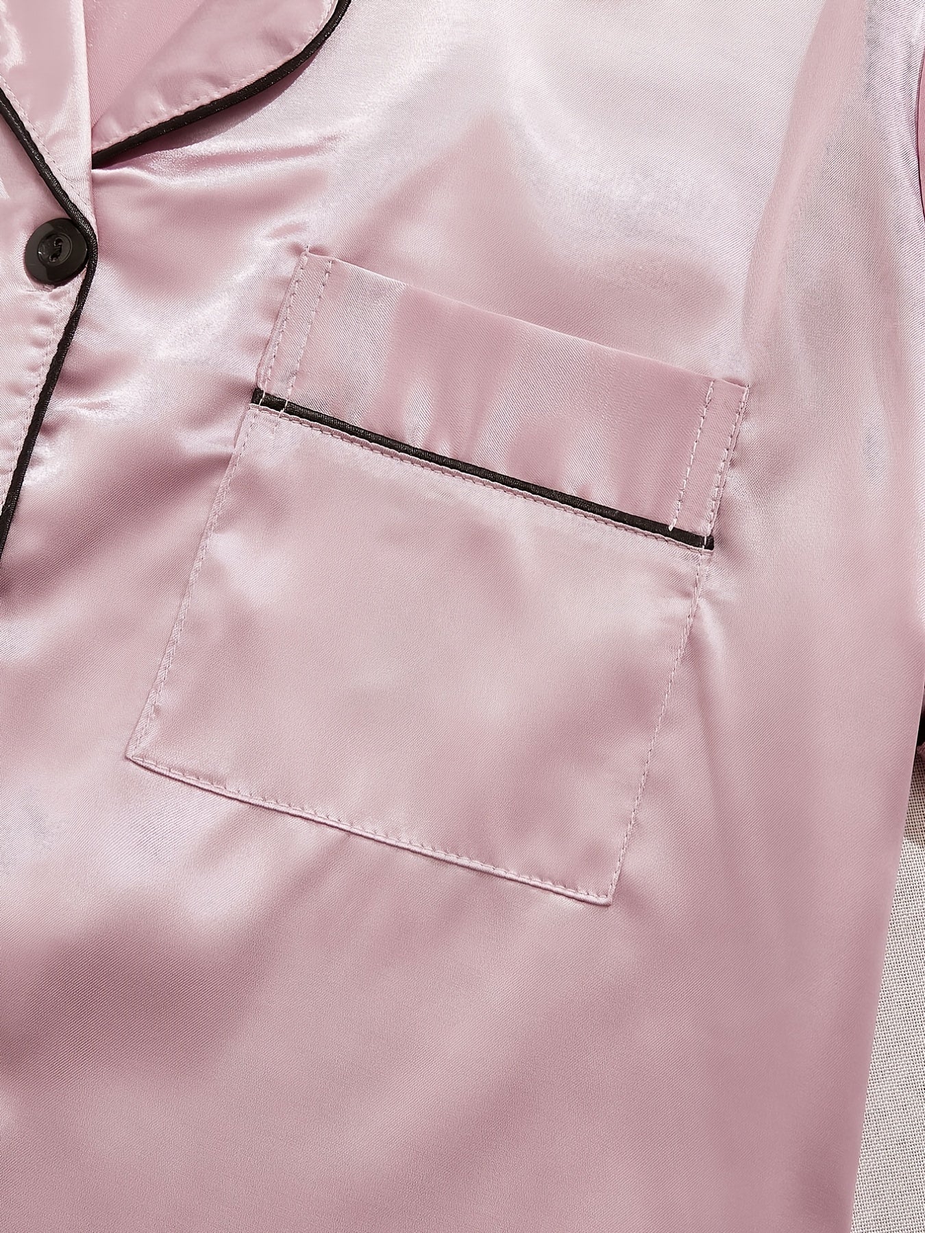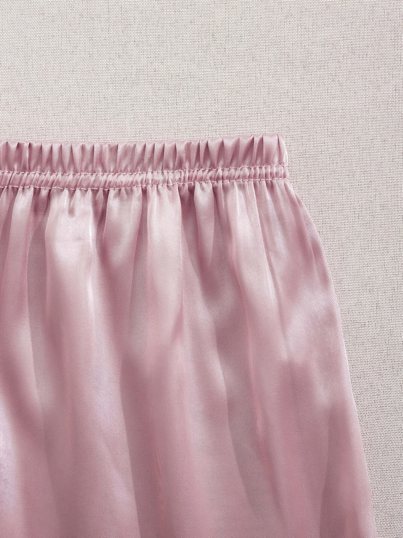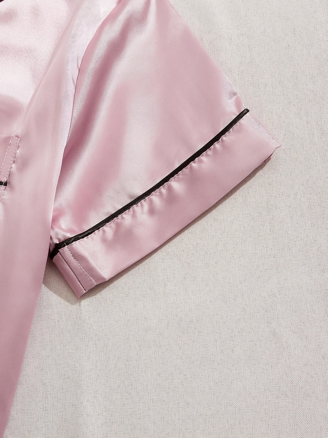 Women's Satin Pajama Set Short Sleeve Top and Elastic Waist Shorts Sleepwear Lounge Wear