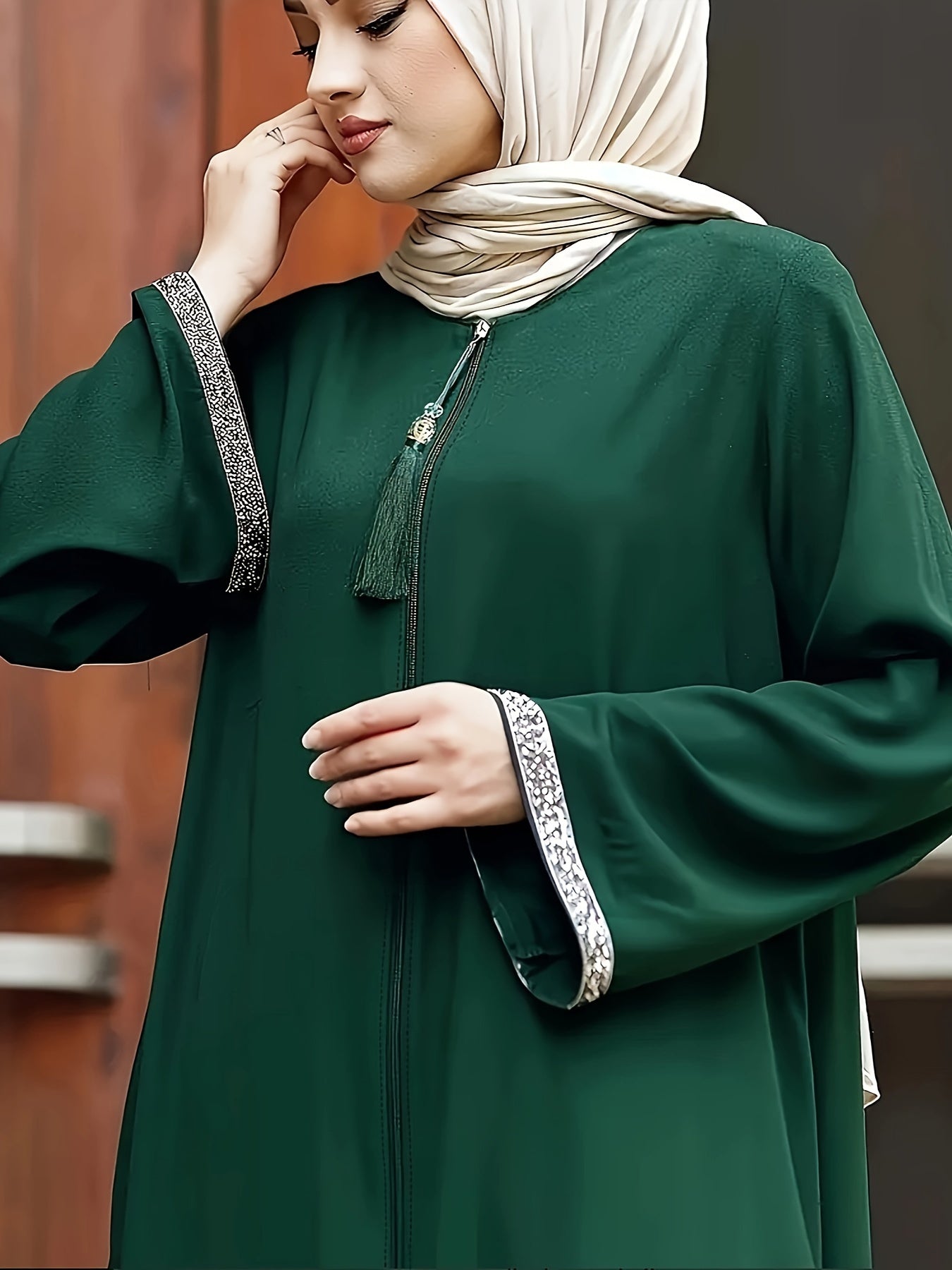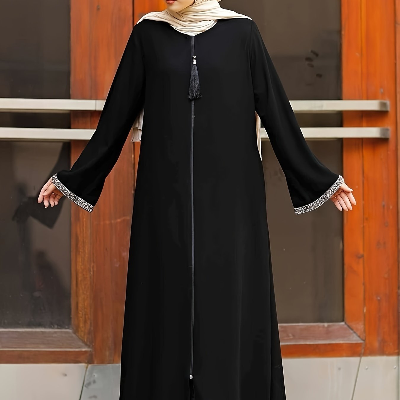 Women's Sequin Trim Long Sleeve Maxi Dress with Crew Neck and Loose Fit