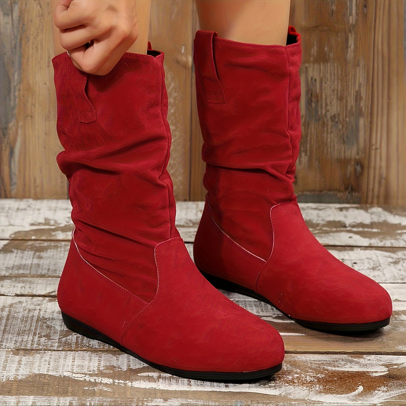 Women's Slim-Fit Mid-Calf Boots Fabric Slip-On Round Toe Winter Shoes