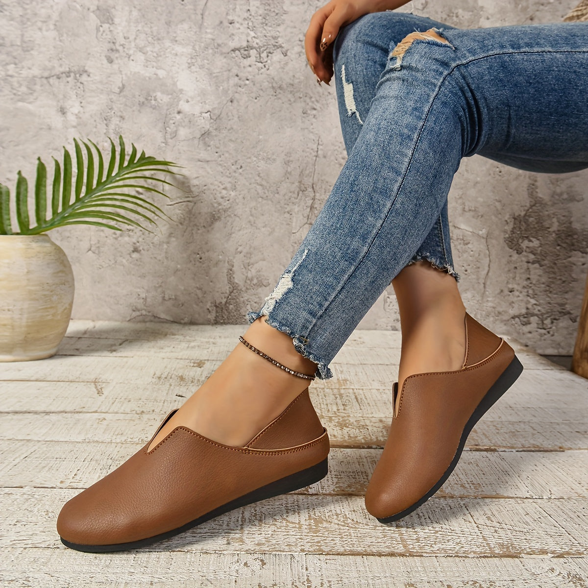 Women's Slip-On Loafers with Round Toe Solid Color Fabric Lining All-Season