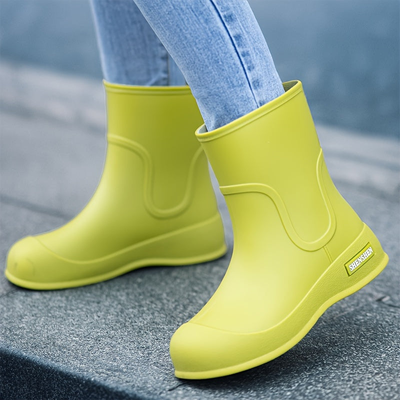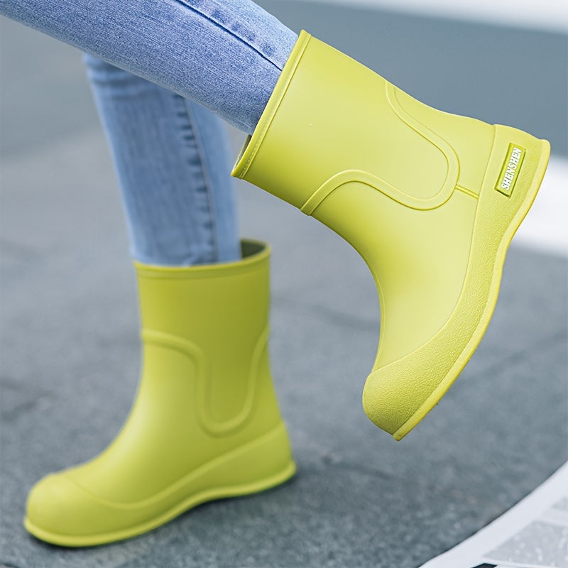 Women's Slip-On Mid-Calf Boots All-Season Non-Slip PVC Black Gray Pink