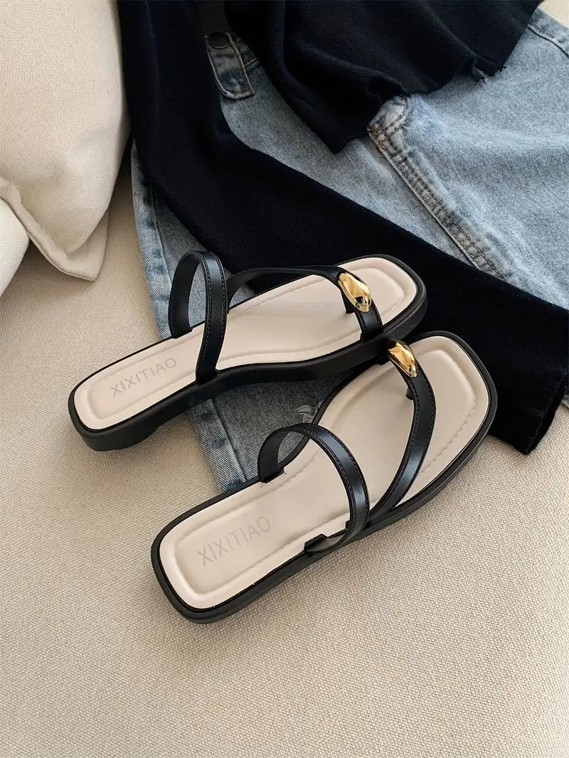 Women's Slip-On Sandals Non-Slip Open-Toe Beach Shoes Black White