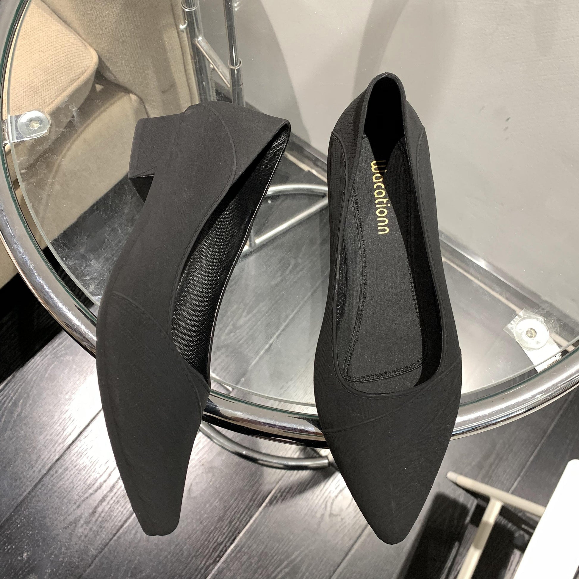 Women’s Solid Color Chunky Heels Casual Point Toe Slip-On Pumps