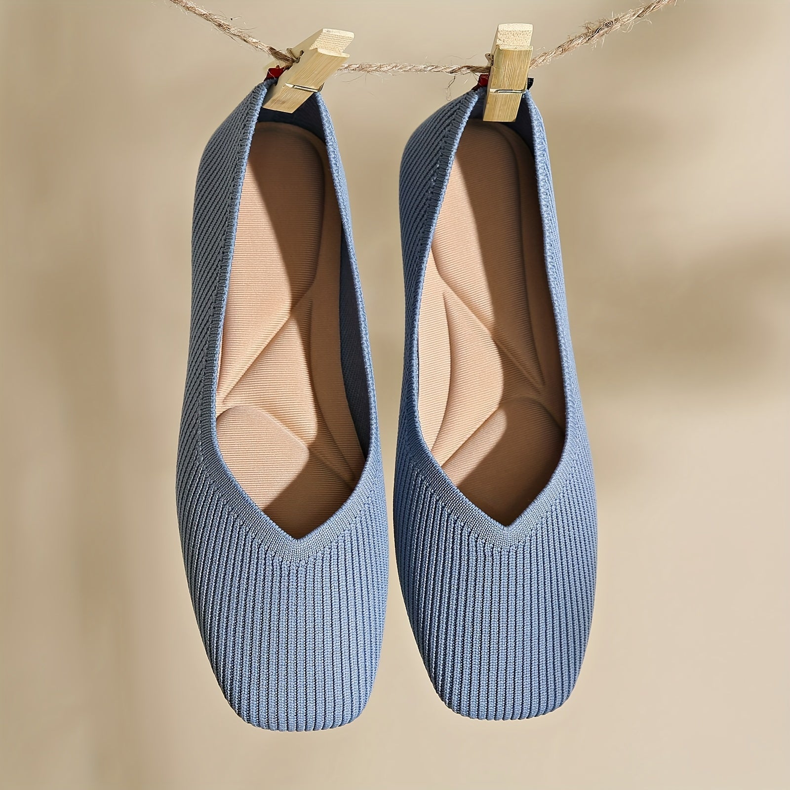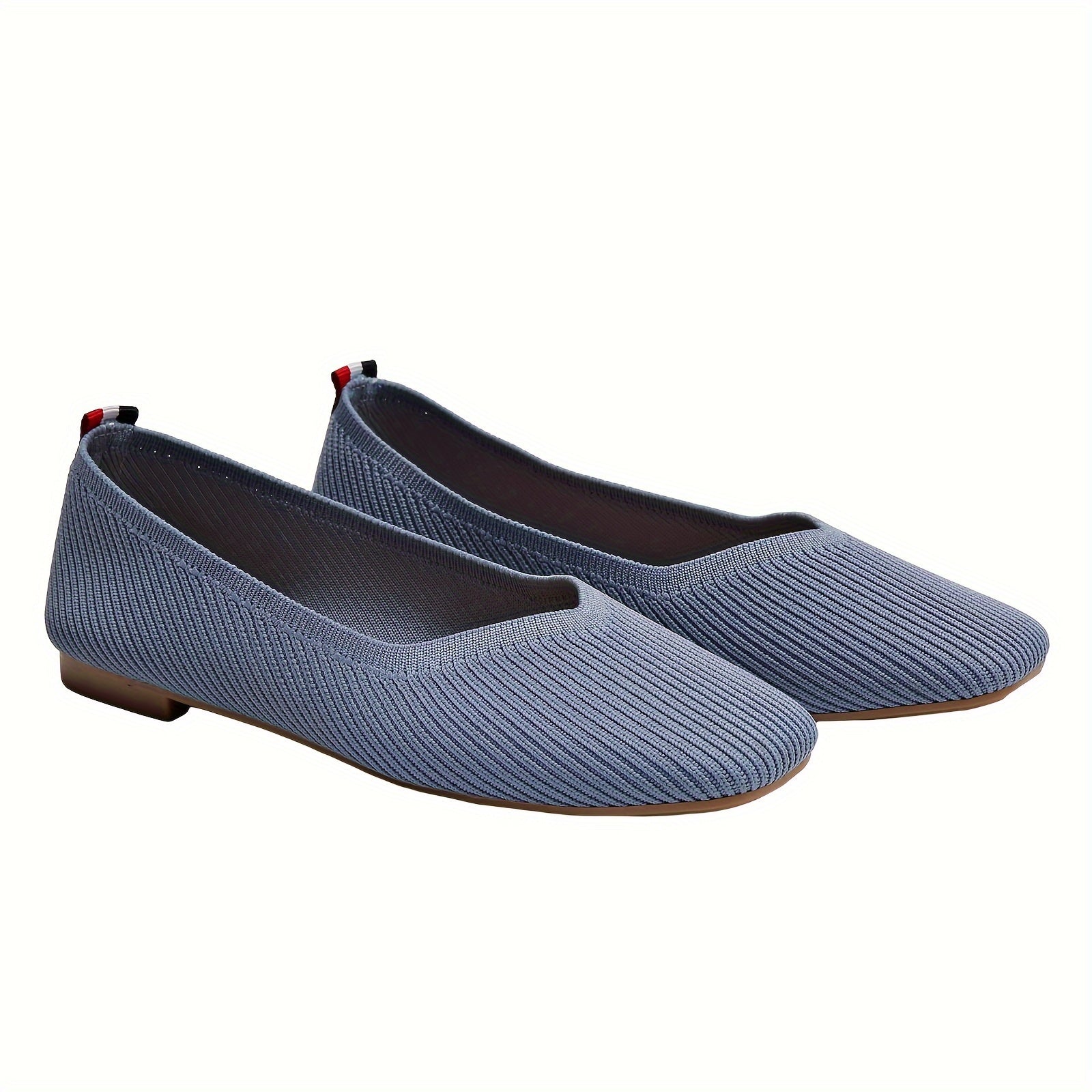 Women's Breathable Square Toe Knitted Flats with Slip-On Style