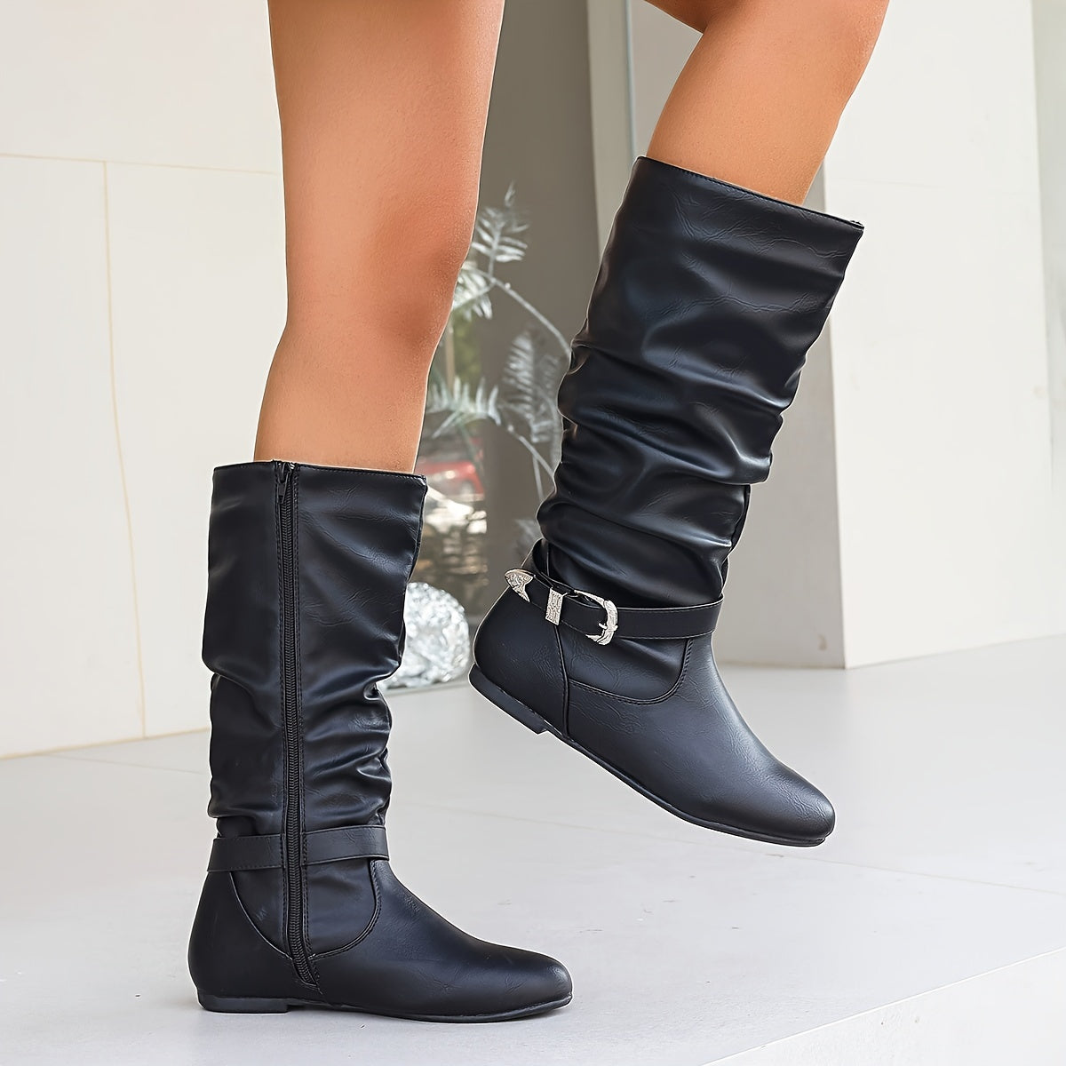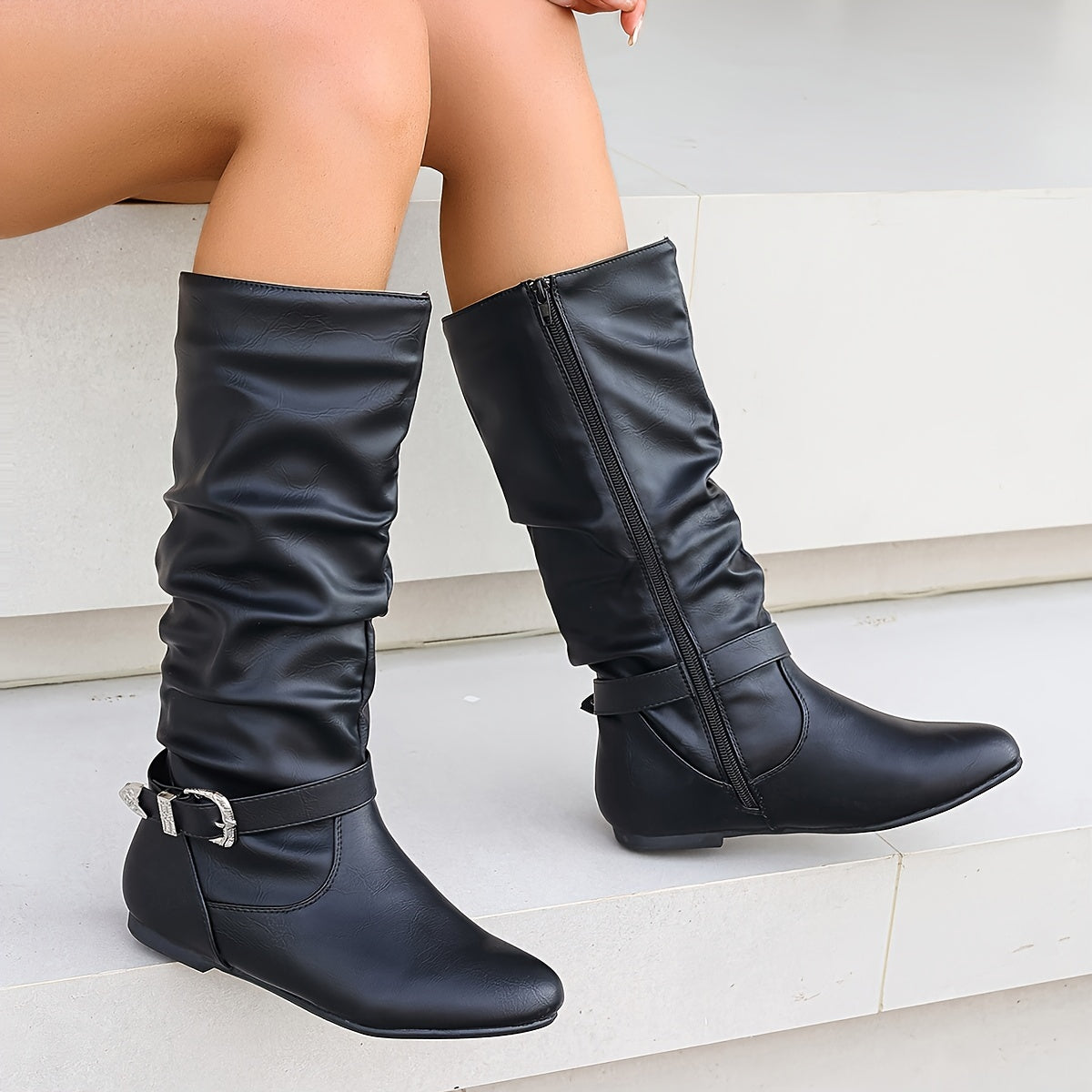 Women's Solid Color Mid Calf Boots With Side Zipper and Comfort