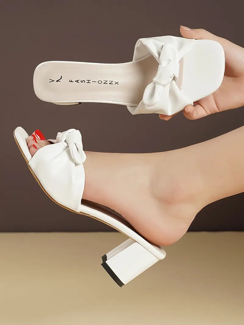 Women's Summer Slip-On Sandals with Chunky Heel and Bowknot