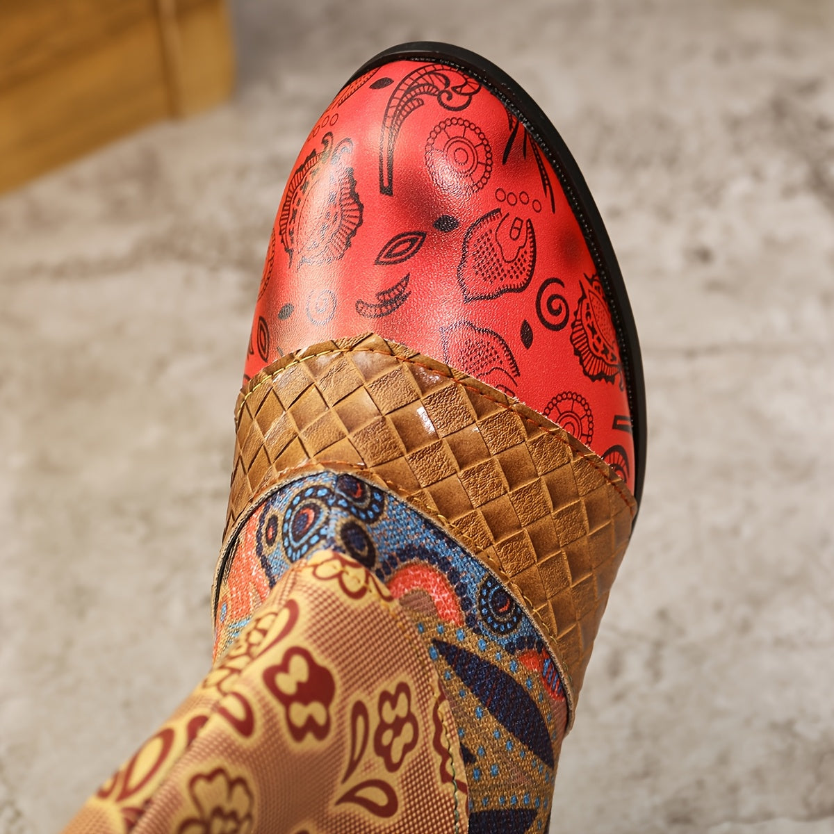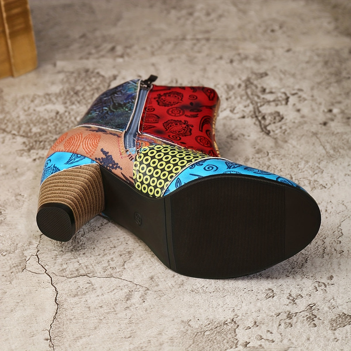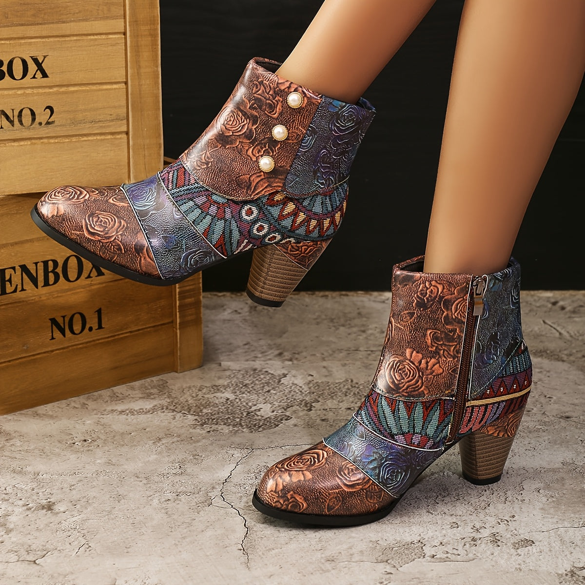 Women's Vintage Ethnic Style High Heel Ankle Boots Black Leather