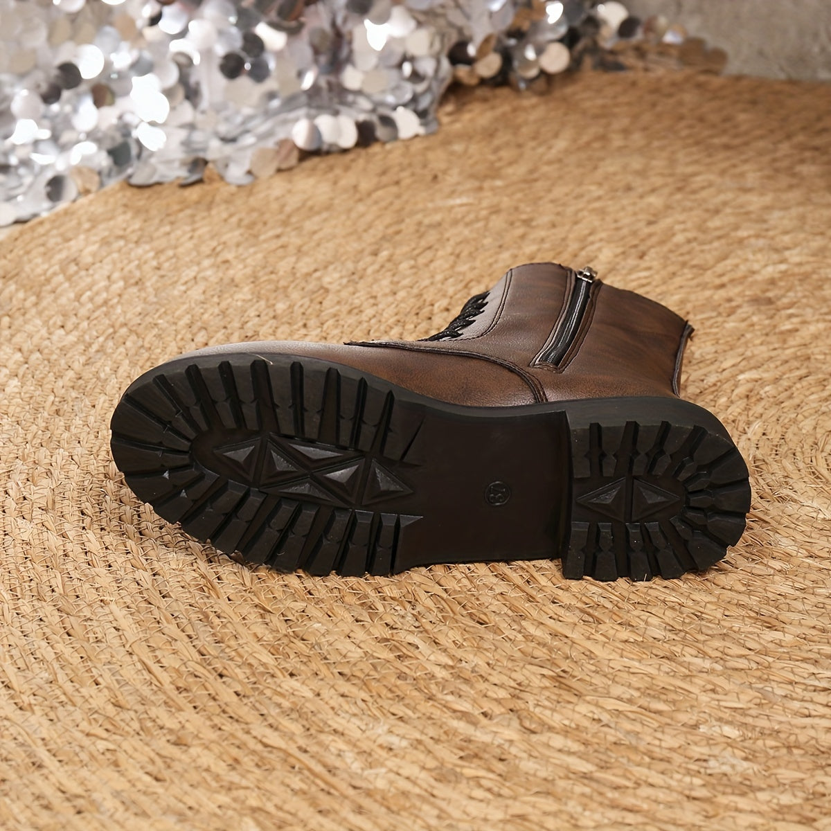 Women's Western Mid-Calf Boots Brown Synthetic Round Toe Zipper Chunky Heel