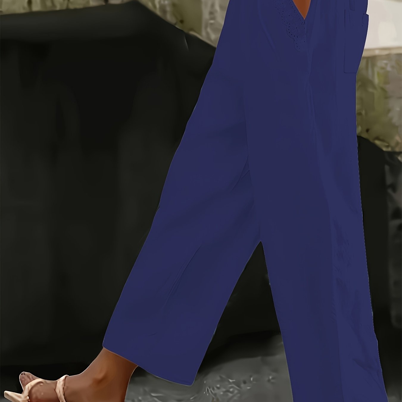 Women’s Wide-Leg Cropped Pants with Lace Pockets Loose Fit Plus Size