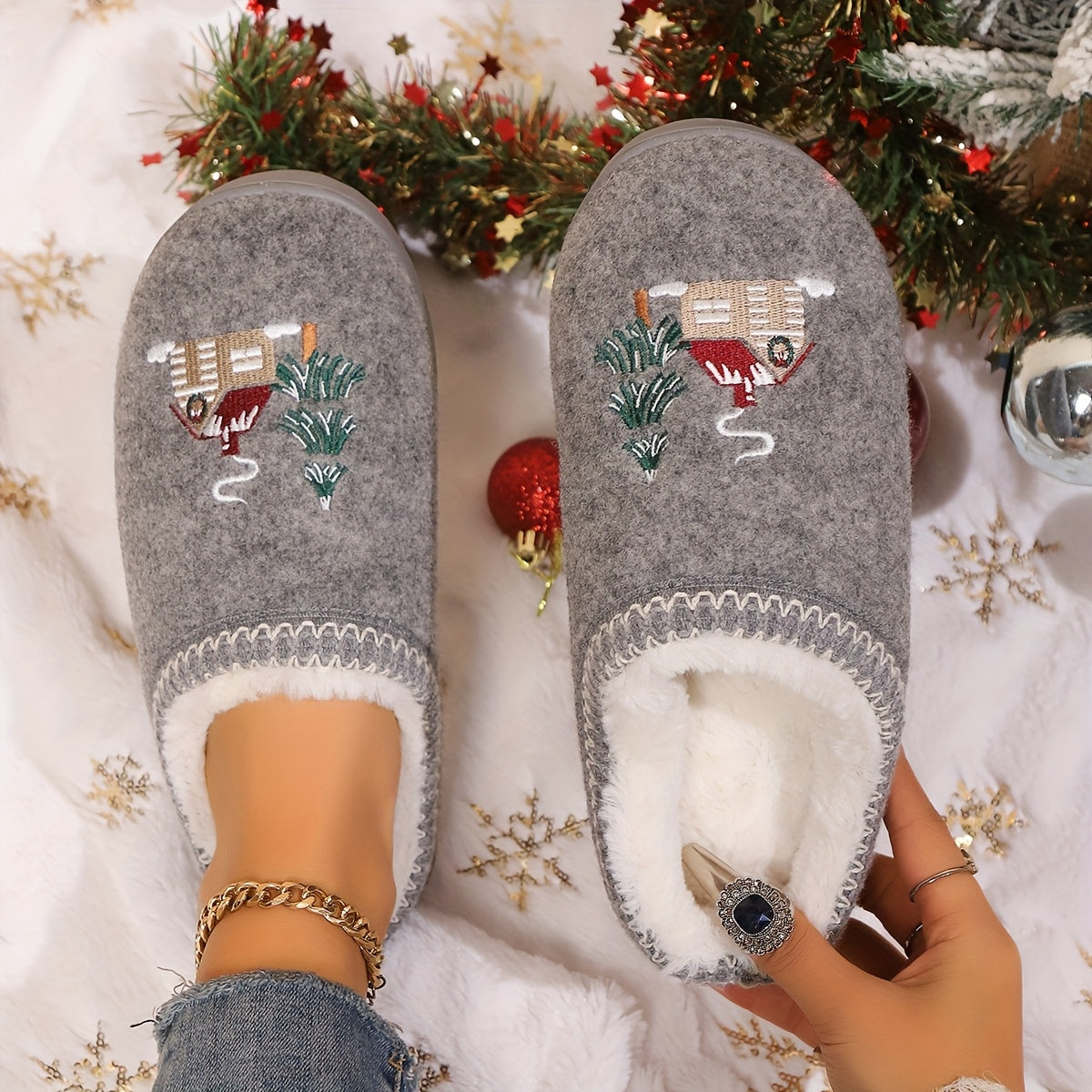 Women's Winter Embroidered Warm Indoor Slippers Comfortable