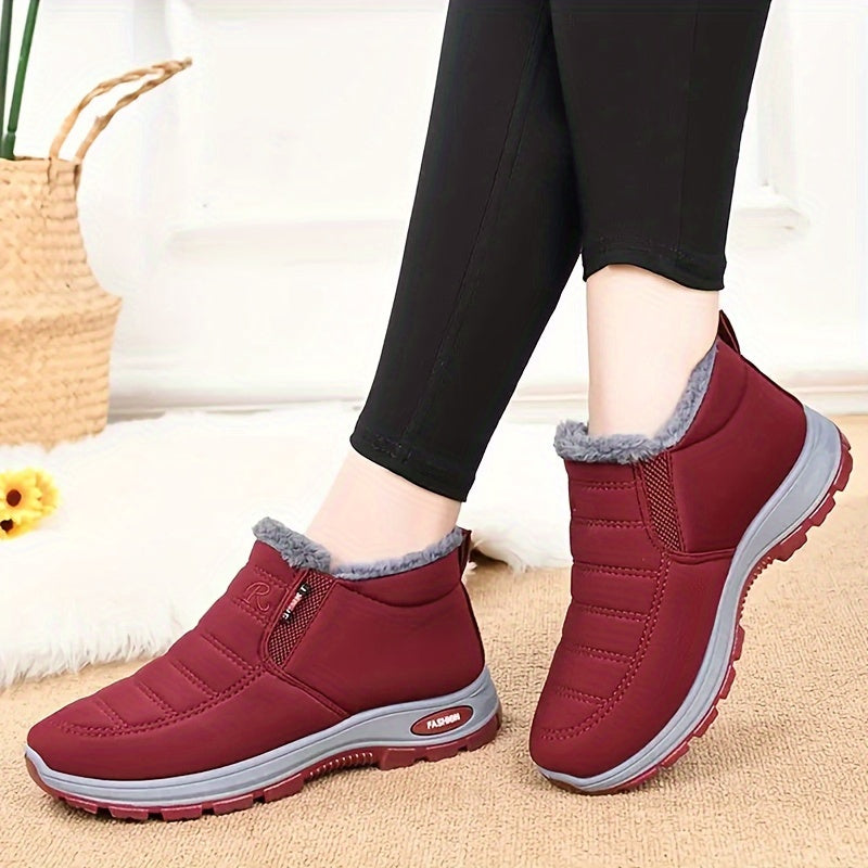 Women's Winter Snow Boots Fleece-Lined Slip-On Solid Color Rubber Sole