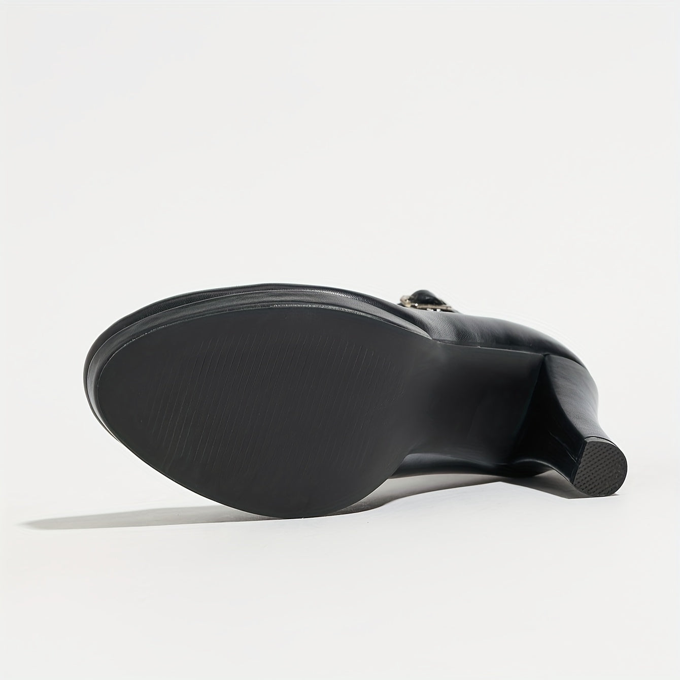 Women Solid Color Round Toe Mary Jane Pumps Breathable Ankle Strap Block Heel