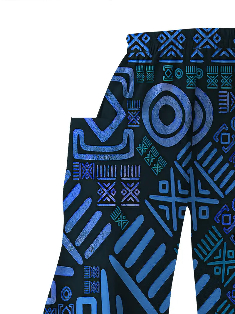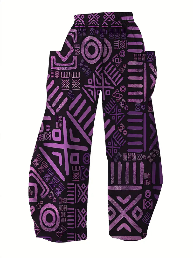 Women Wide Leg Pants Stretchy Polyester Vibrant Geometric Print