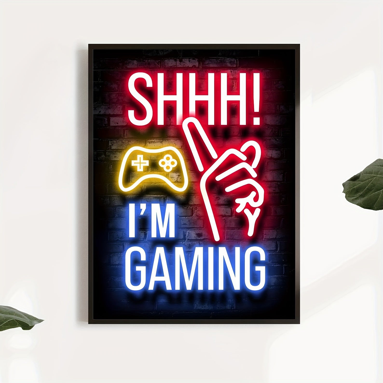 Neon Effect Canvas Wall Art Poster I Am Gaming Letter Print Bedroom Living Room Decor