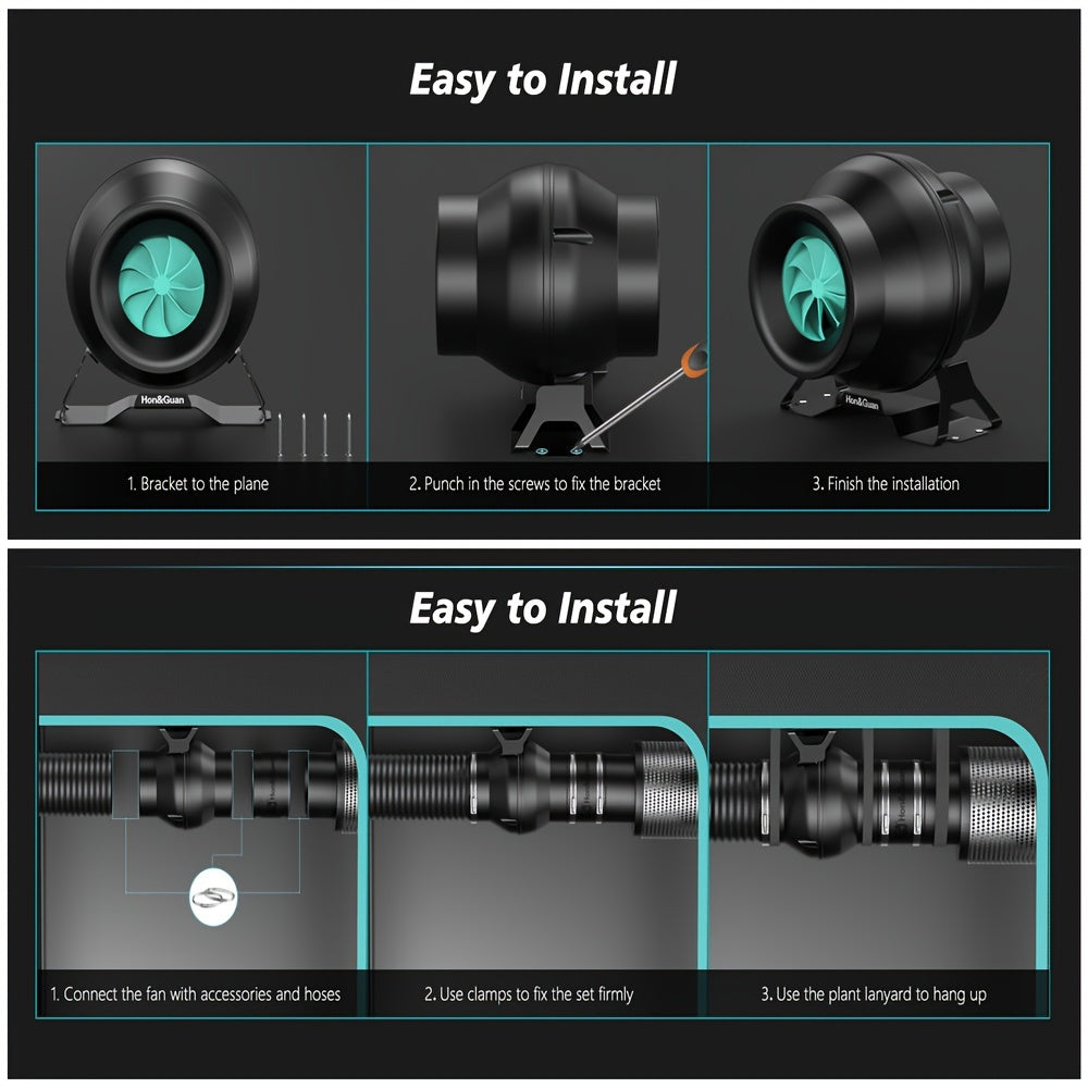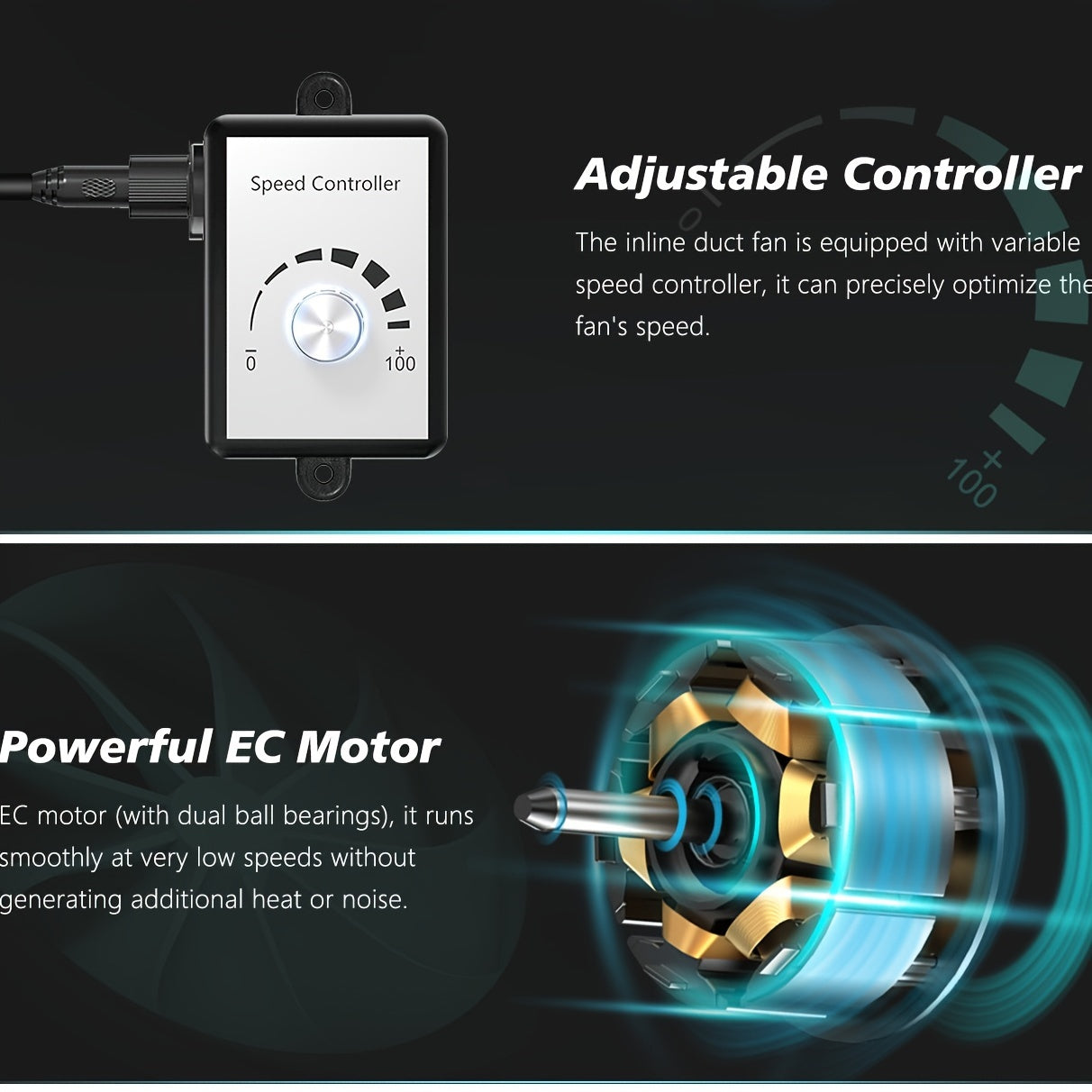 Inline Duct Fan 4 Inch 146 CFM EC Motor Ventilation Exhaust for Grow Tents Hydroponics