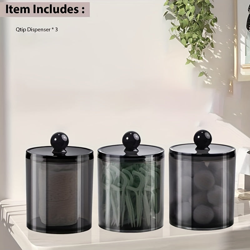 10 Oz Black Plastic Bathroom Storage Jar for Cotton Balls Swabs and Hair Ties