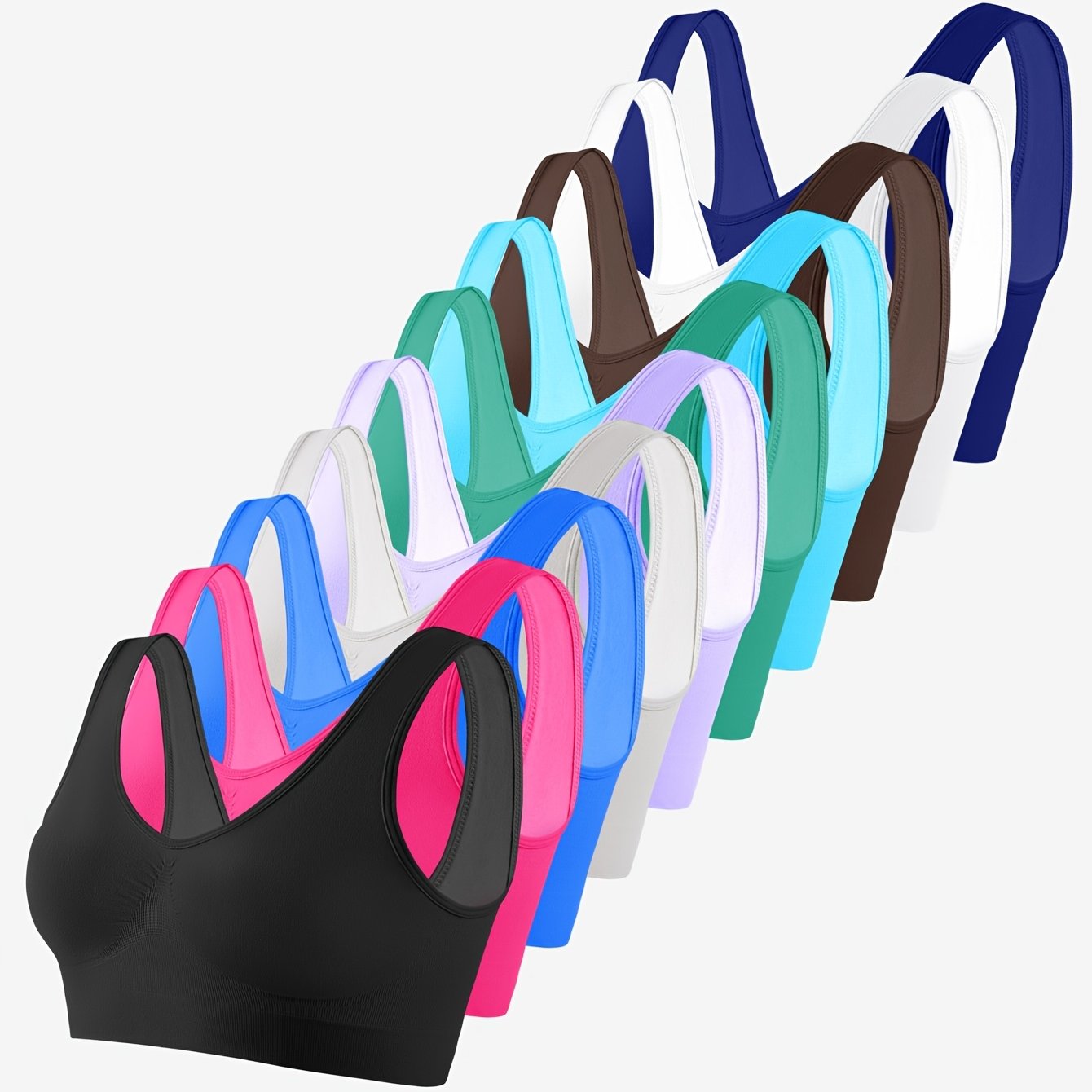 10-Pack Women's Seamless High-Elasticity Bras and Breathable Sleep Tank Tops U-Back Style