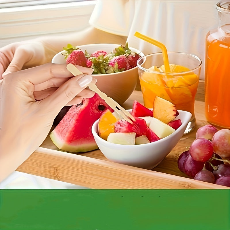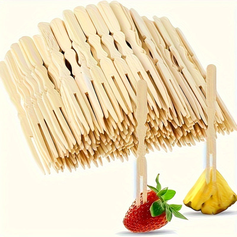 100/200pcs Mini Bamboo Cocktail Forks for Appetizers Fruits Pastries