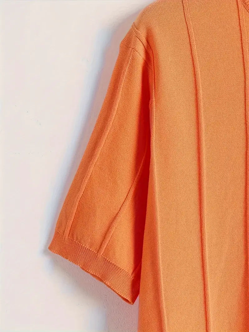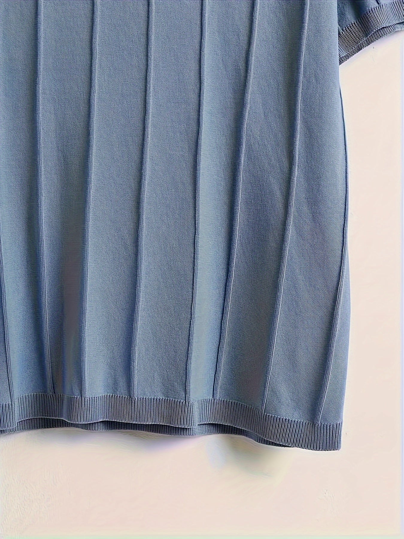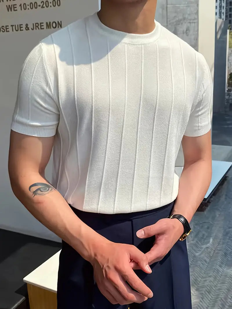 Men's Cotton Ribbed Knit T-Shirt Short Sleeve Crew Neck Striped Summer Casual