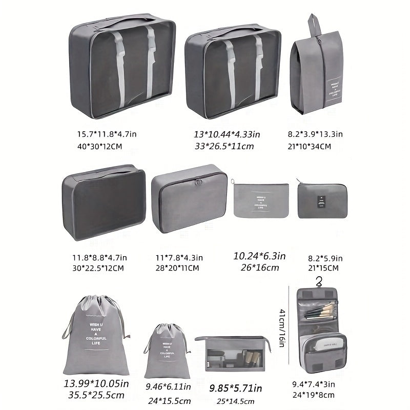 11-Piece Nylon Hanging Cosmetic Bag Set for Travel Organization with Mesh Compartments