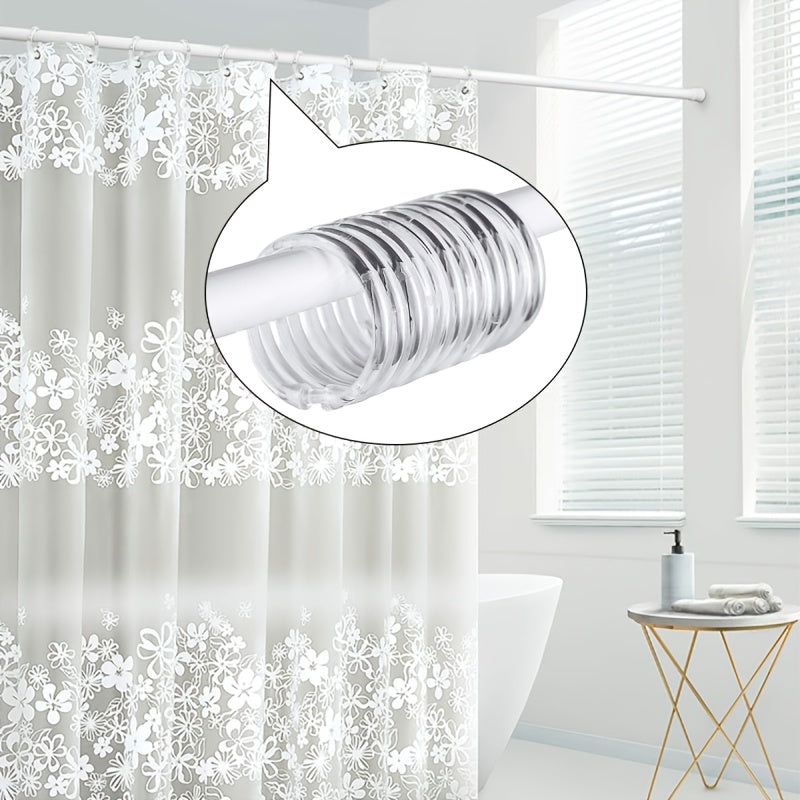12 Durable Clear Plastic Shower Curtain Rings for Bathroom Curtains and Window Rods