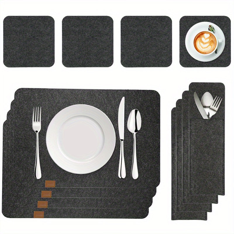 12-Piece Dining Table Decor Set with Felt Placements Coasters and Cutlery Bag