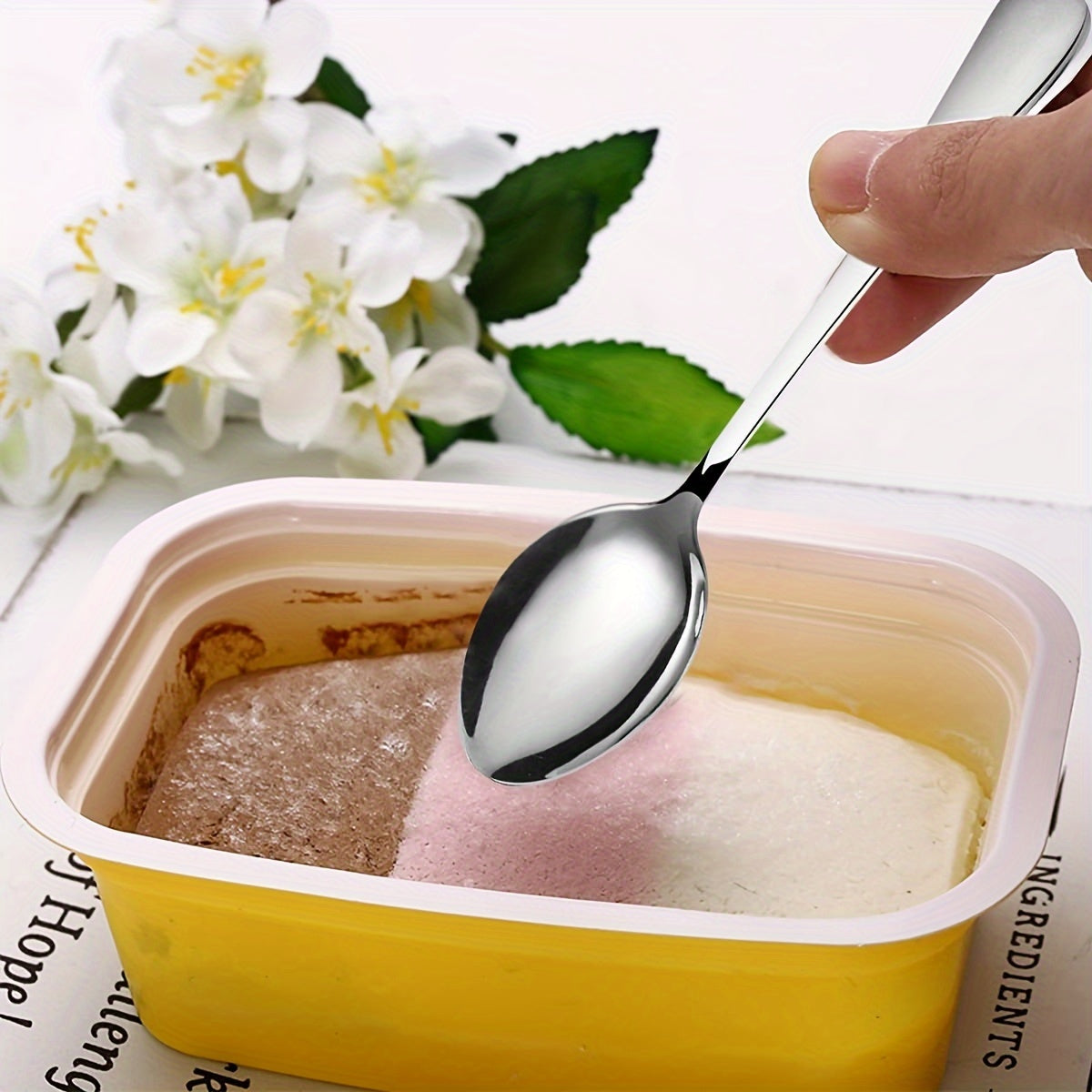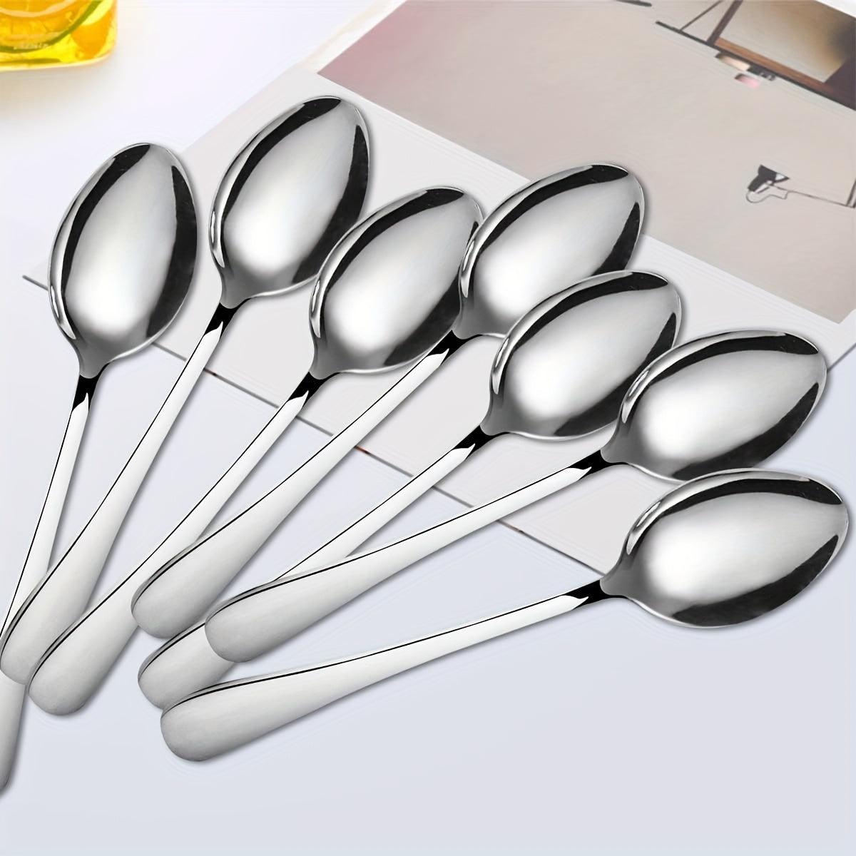 12-Piece Stainless Steel Dessert Spoons Set 13.69cm Black Accents Polished Finish