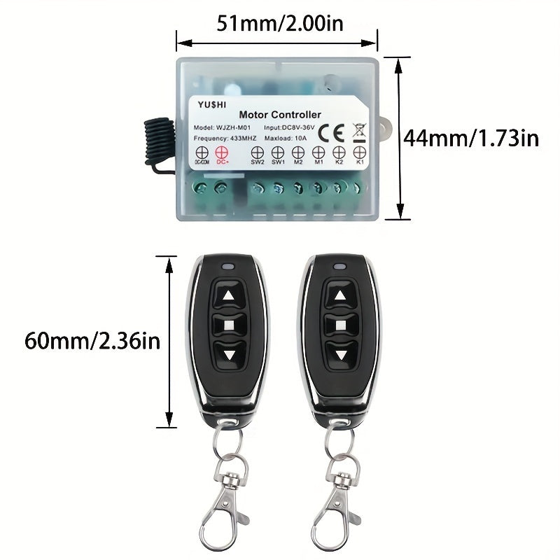 1pc Control system (including 1pc Receiver, 2pcs Remote Control)Linear actuator stroke length:Wiring diagram: