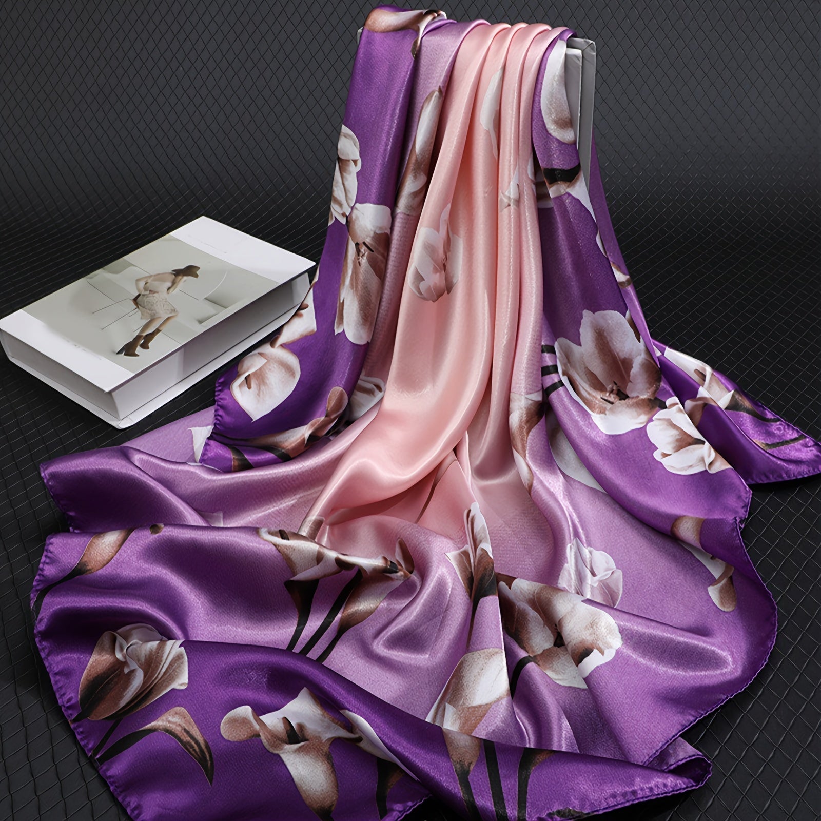 Blue Floral Print Square Scarf Women Lightweight Windproof Sun Protection Casual