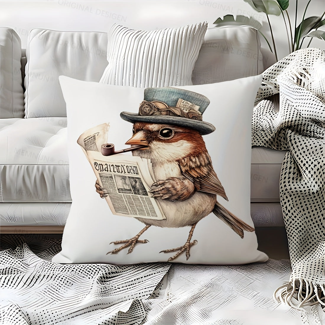 44.96x44.96cm Single-Sided Printed Cushion Cover Smoking Robin Retro Style Polyester Zipper Closure Machine Washable for Living Room Sofa Bedroom Decor